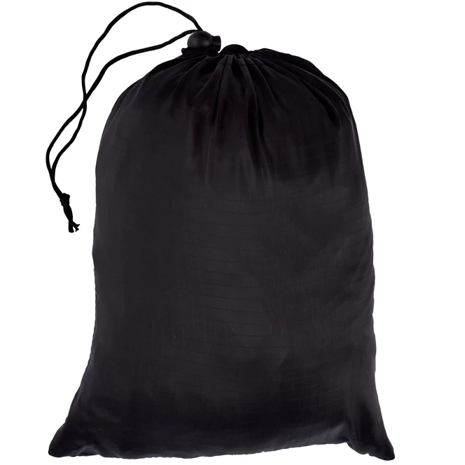 Hangmat met geïmpregneerd oppervlak, 2 spreidstangen, 2 drainagekoorden, opgenaaide pakzak, ruggengraat en geïntegreerd muskietennet.