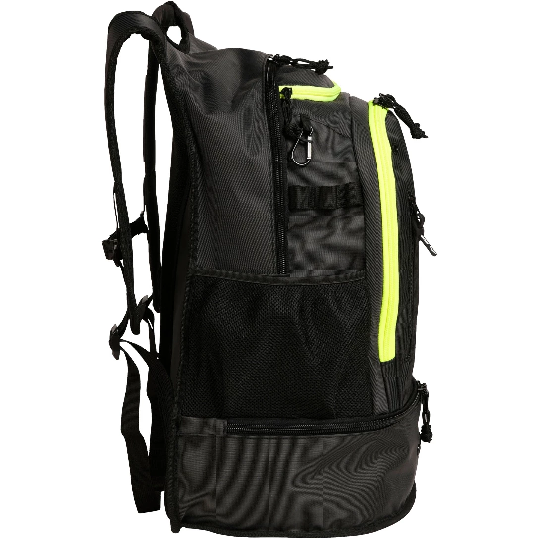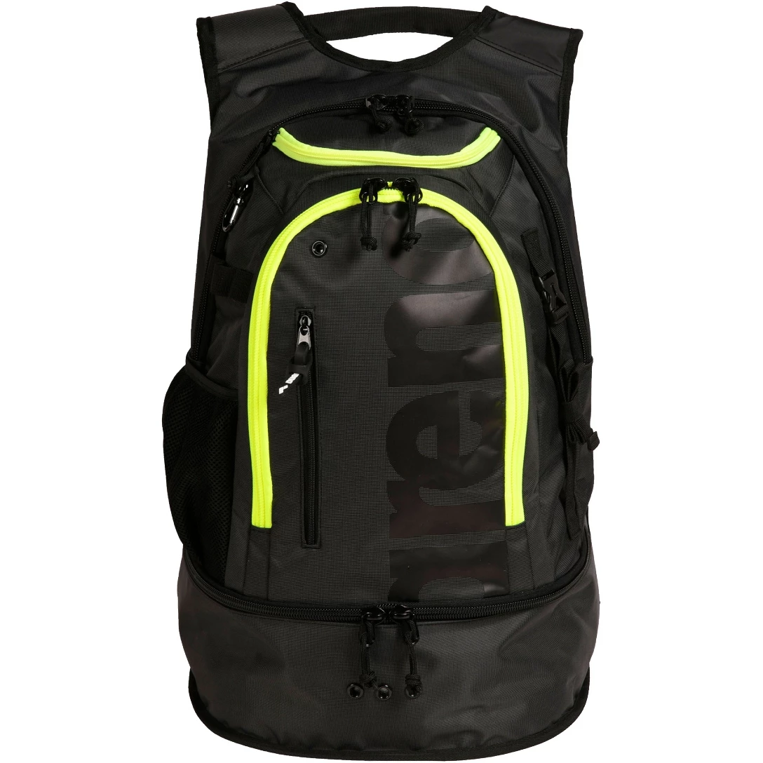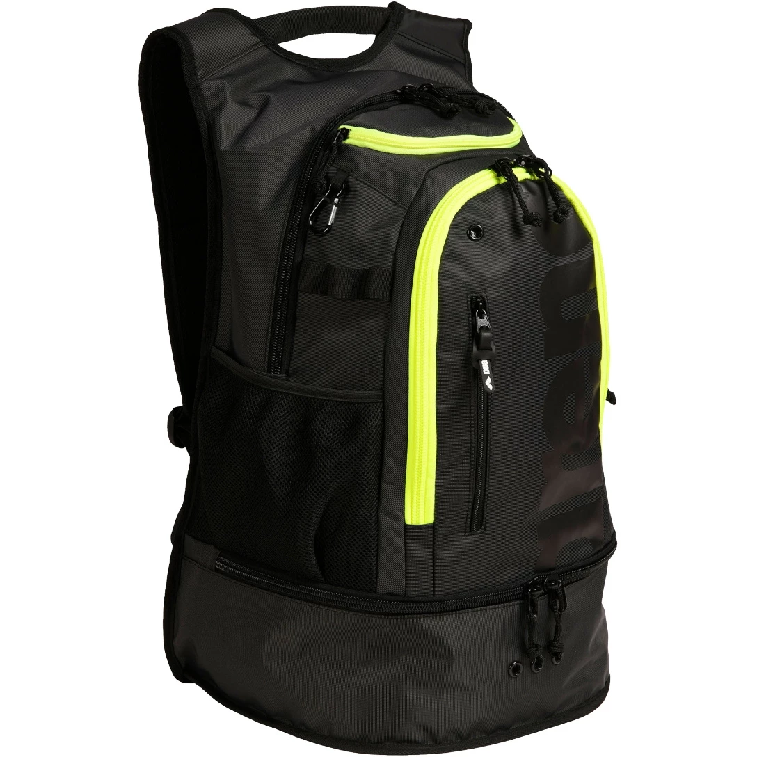 De uiterst praktische en veelzijdige arena Fastpack 3.0 rugzak is speciaal ontworpen voor zwemmers, triatleten en sportievelingen. Een groot vak aan de achterkant biedt voldoende opbergruimte, zelfs voor grote trainingsuitrusting zoals een zwemplank. Het ruime bodemvak is ideaal voor natte spullen of schoenen. De rugzak kan worden opgehangen met de karabijnhaak en gebruikt worden als kledingkast. De gewatteerde rug en de comfortabele schouderbanden maken de rugzak uiterst comfortabel om te dragen, zelfs wanneer hij volledig geladen is. De versterkte bodem beschermt de inhoud van de rugzak tegen vocht. Afmetingen: 54cm x 36cm x 27cm, 40L