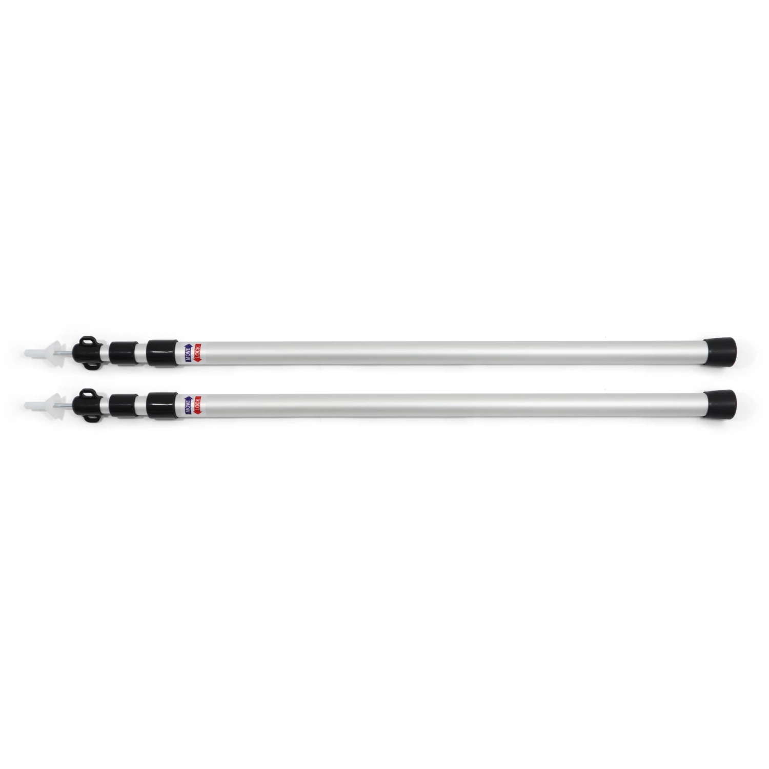 Lichtgewicht en telescopische stokken voor uw tarp, dekzeil en luifel. Met klembevestigingen (vergelijkbaar met die voor bergpalen). De 3 segmenten worden uit elkaar getrokken en met de klok mee vastgezet.
