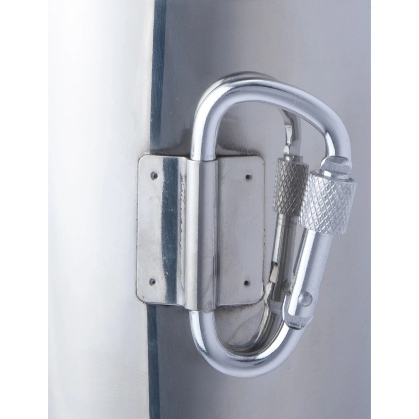 De stabiele, dubbelwandige is gemaakt van 18/8 roestvrij staal. Het handvat is ontworpen als karabijnhaak die bijna overal veilig kan worden bevestigd door middel van een schroefsluiting en kan ook worden ingeklapt. Deze mok biedt veelzijdig gebruik en is ook zeker een cadeau dat altijd aankomt.