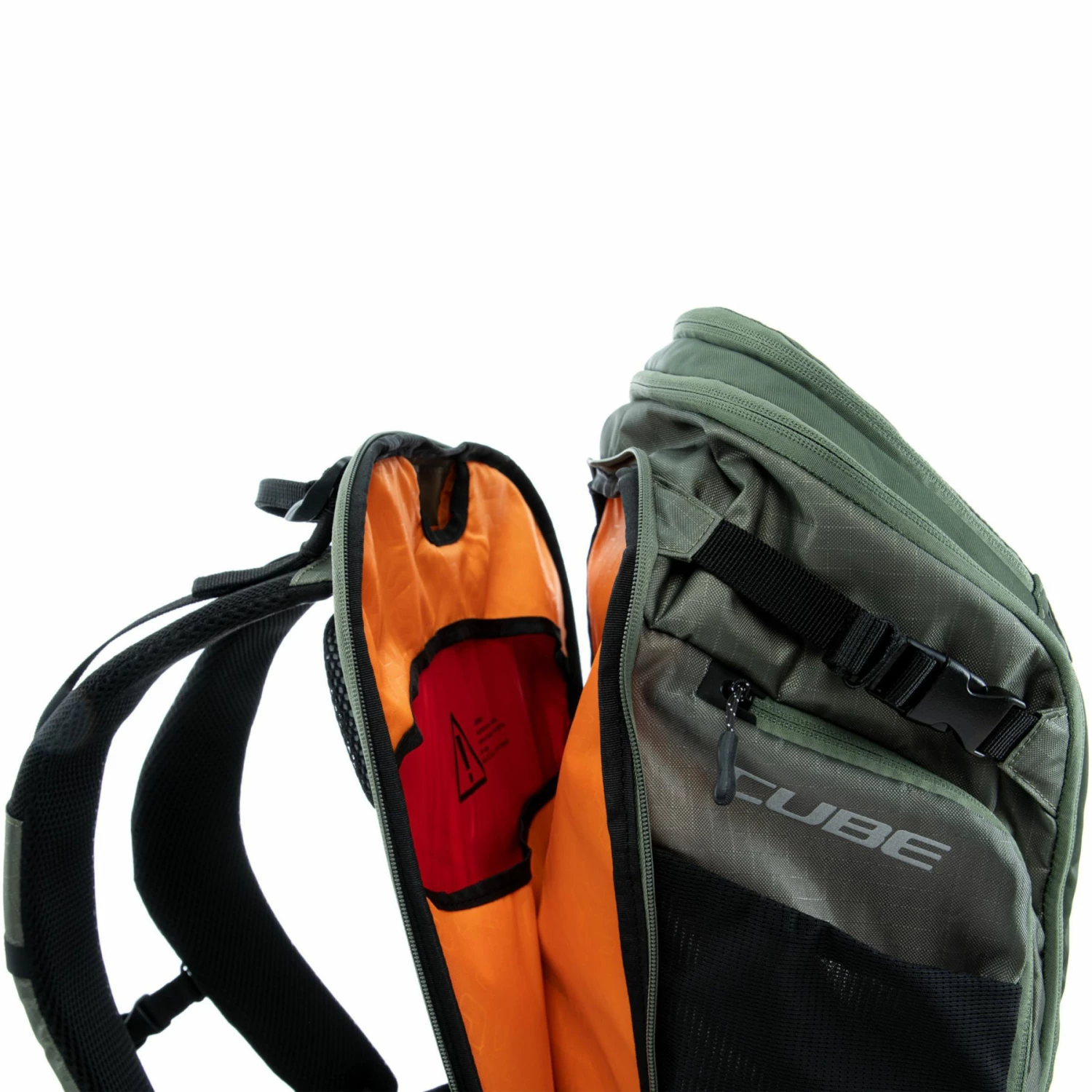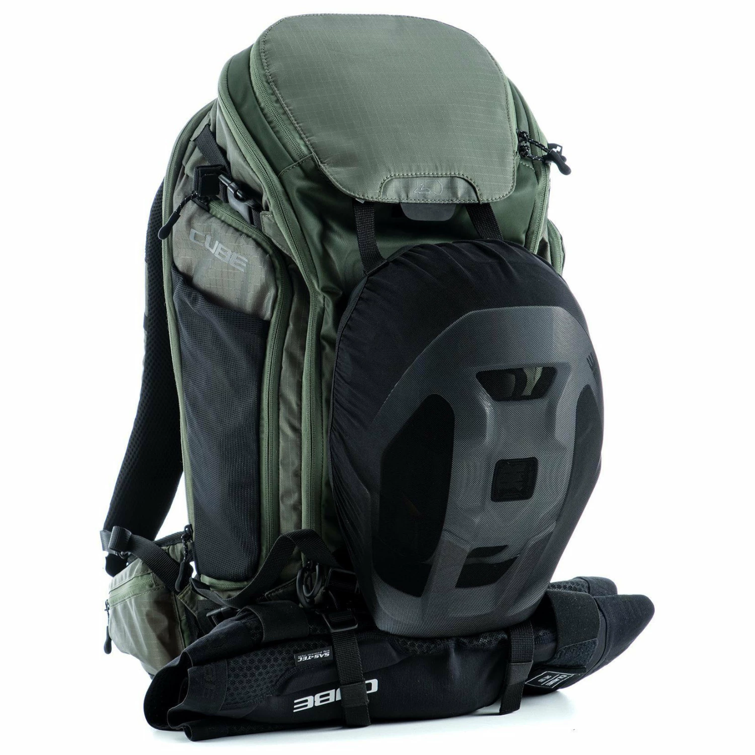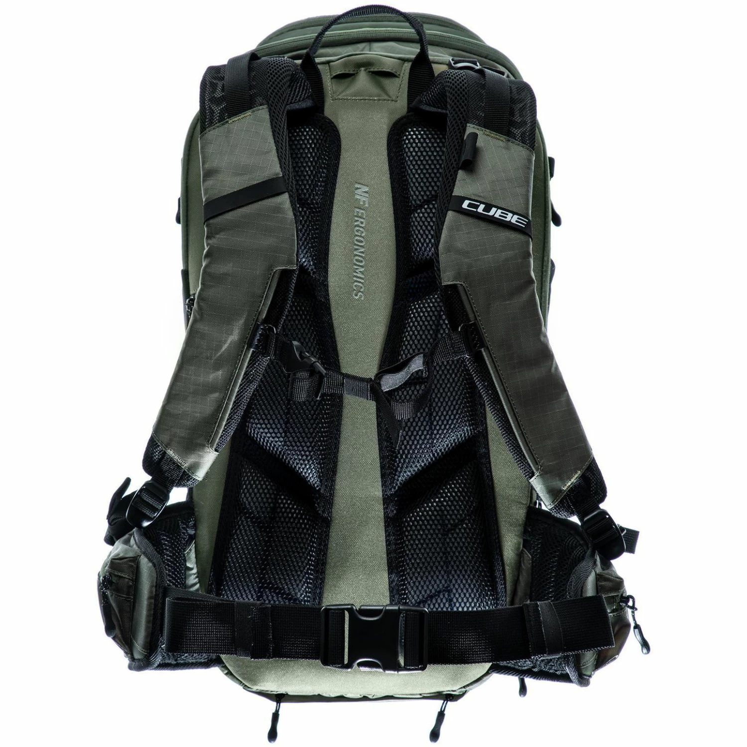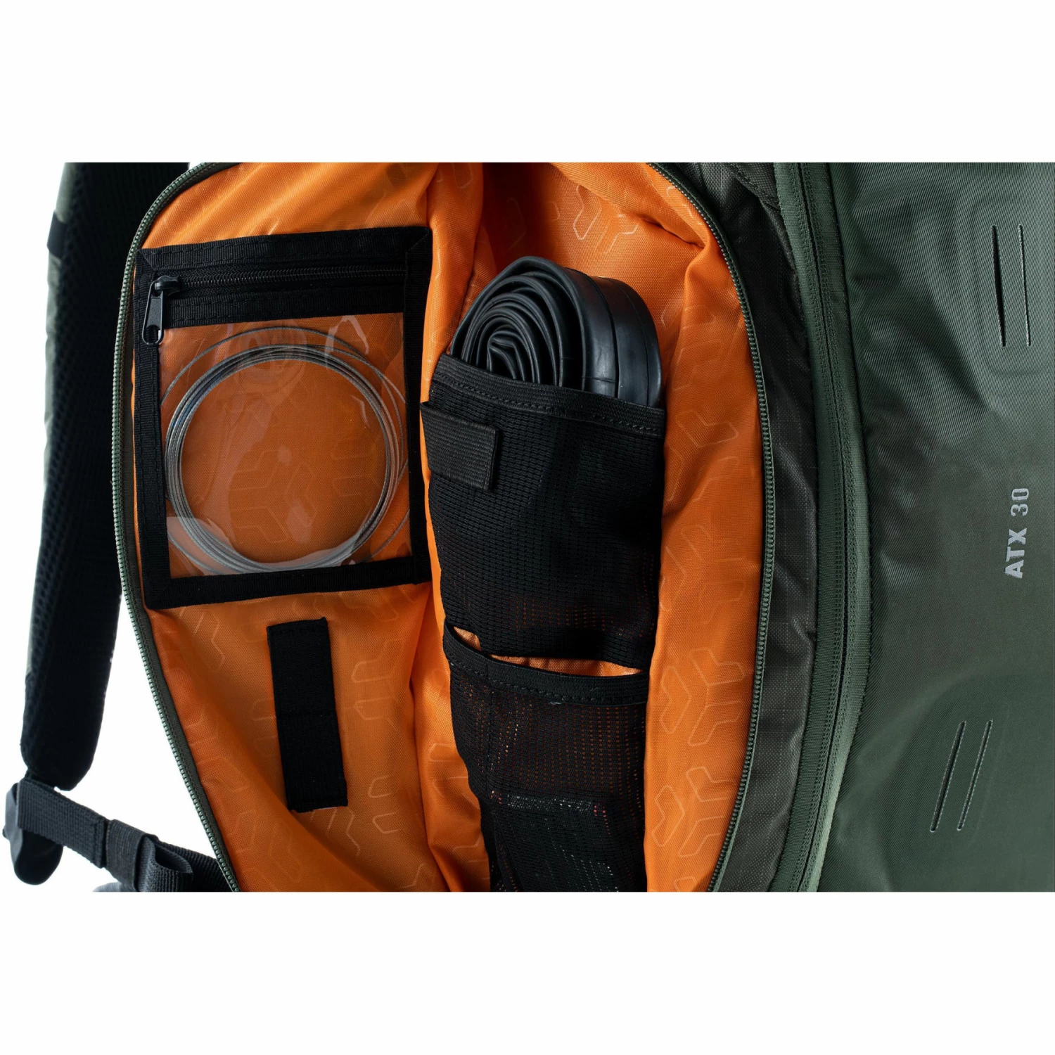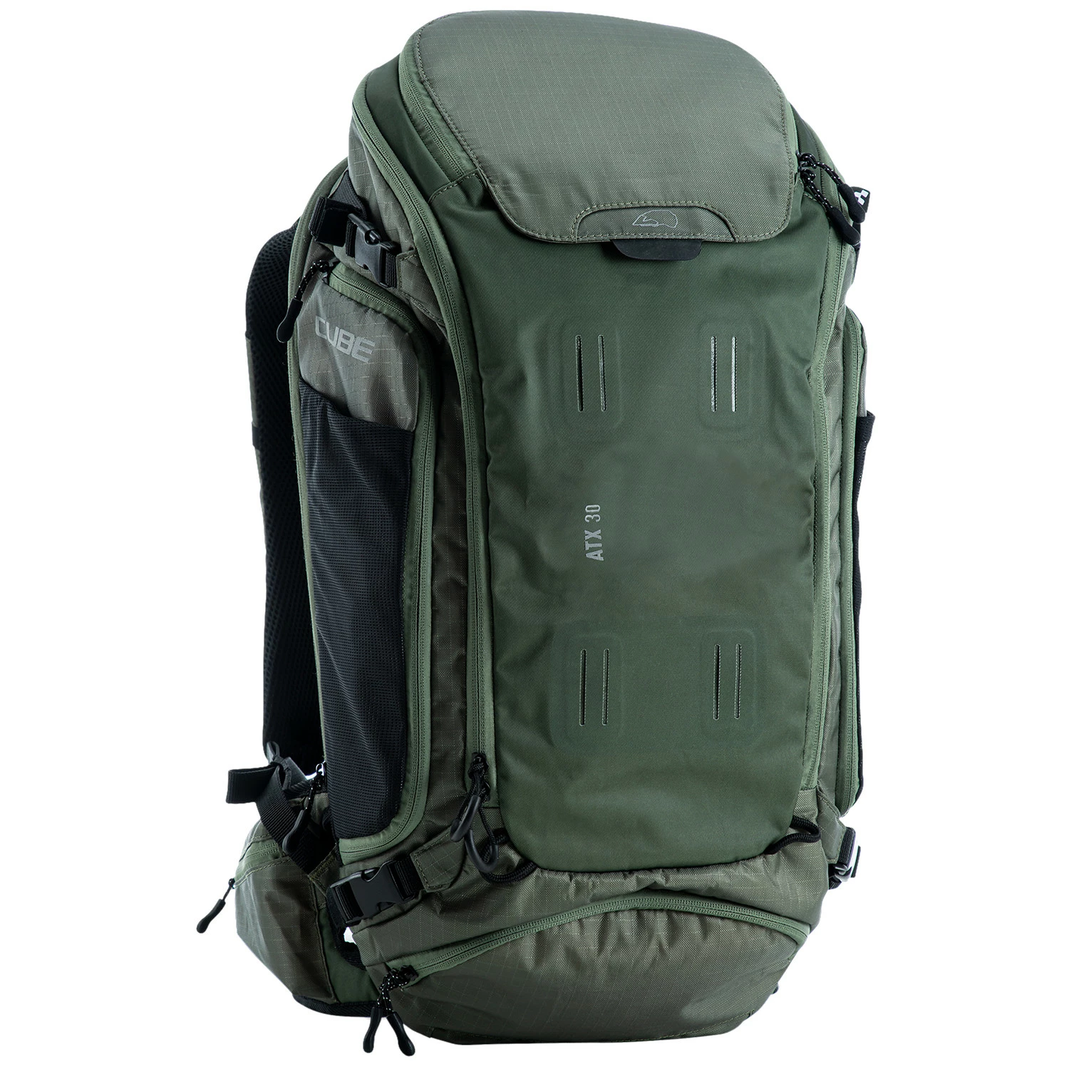De ATX 30 is de grootste rugzak in het Cube portfolio en biedt veel opbergruimte. Dankzij het Natural Fit rugsysteem en de gewatteerde heupgordel past de rugzak nog steeds perfect. Het gewicht is gelijkmatig verdeeld, de rug is ook goed gewatteerd en aangenaam geventileerd. Dankzij het MOLLE-systeem kunnen losse zakken met klittenband veilig aan de rugzak worden bevestigd. En als je minder kleren bij je hebt, kan de rugzak gewoon compact worden samengetrokken met de compressieriemen aan de zijkant. Dankzij een verstandige vakindeling, twee gereedschapsvakken en een zijvak voor de smartphone heb je alle benodigdheden bij de hand. De rugzak heeft ook een vak voor hydratatieblazen en een waterdichte regenhoes voor natte dagen.