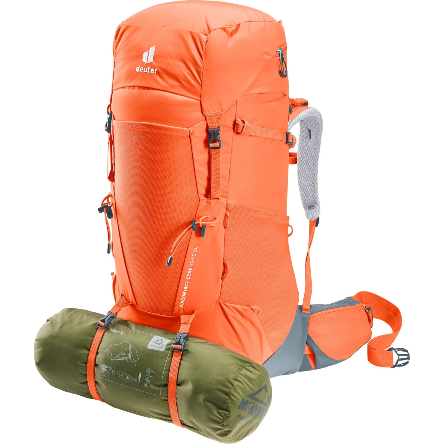 Het draagcomfort wordt verzekerd door het Aircontact rugsysteem met Air Spacer Mesh en groot ventilatiekanaal, de ergonomische ActiveFit schouderbanden en de verstelbare borstriem.