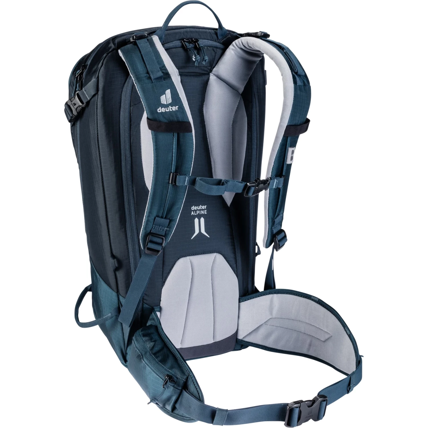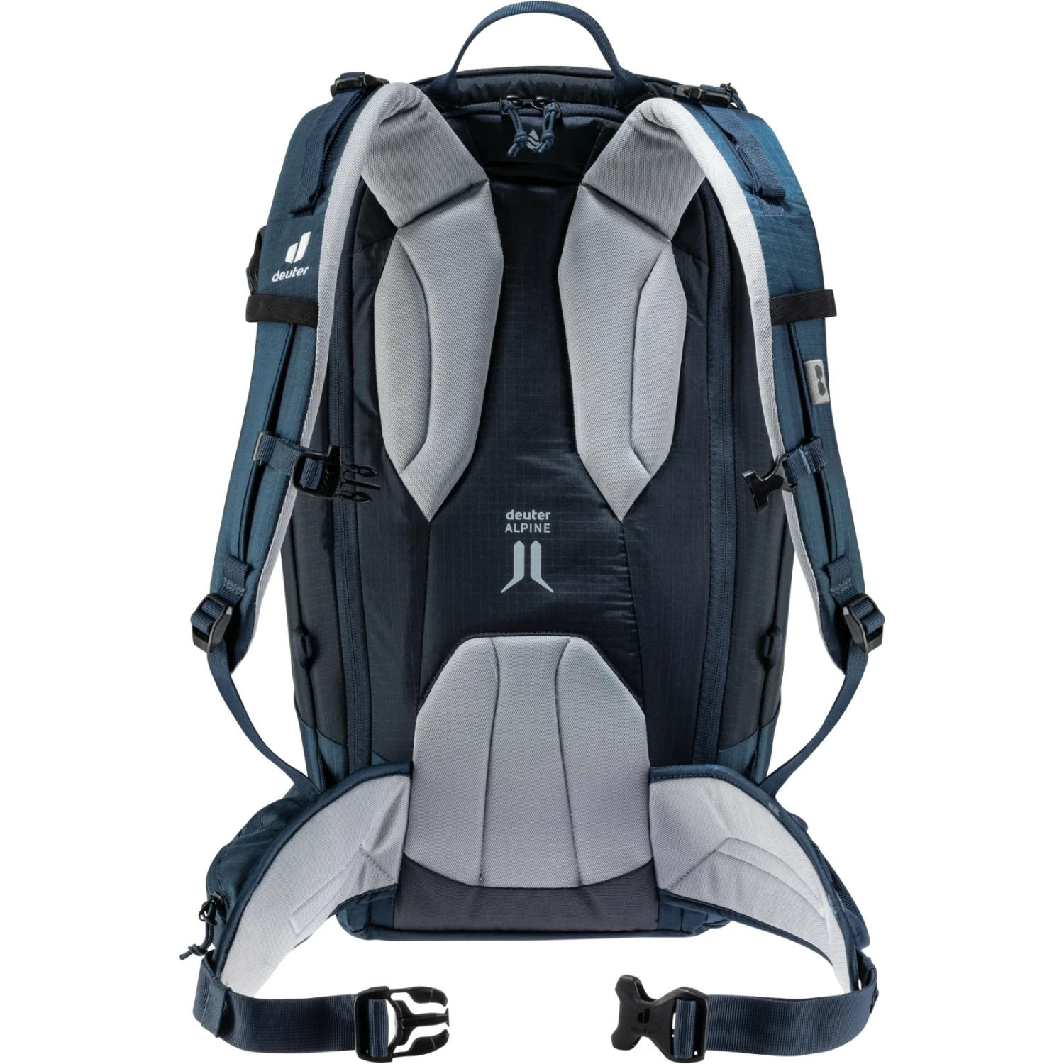 Met twee aparte riemen kunnen ski’s, snowboard en sneeuwschoenen in een handomdraai aan de buitenkant van de rugzak worden bevestigd: Ski’s diagonaal of in A-vorm, snowboard en sneeuwschoenen verticaal. Bovendien dienen de flexibel bruikbare bevestigingsriemen voor zijdelingse compressie.