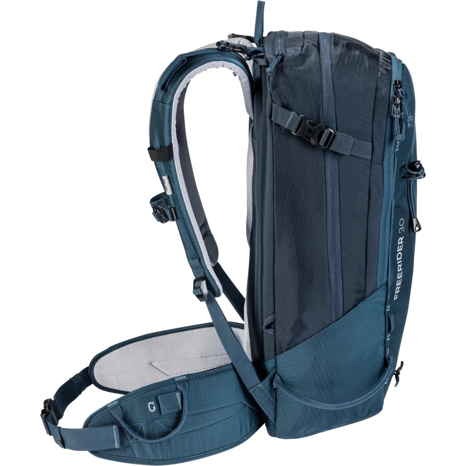 De Freerider maakt indruk met zijn doordachte winterkenmerken, zoals de volledig uitklapbare rugopening. Enerzijds biedt deze een optimaal overzicht over de uitrusting. Aan de andere kant blijft het rugsysteem droog als de rugzak wordt neergezet.