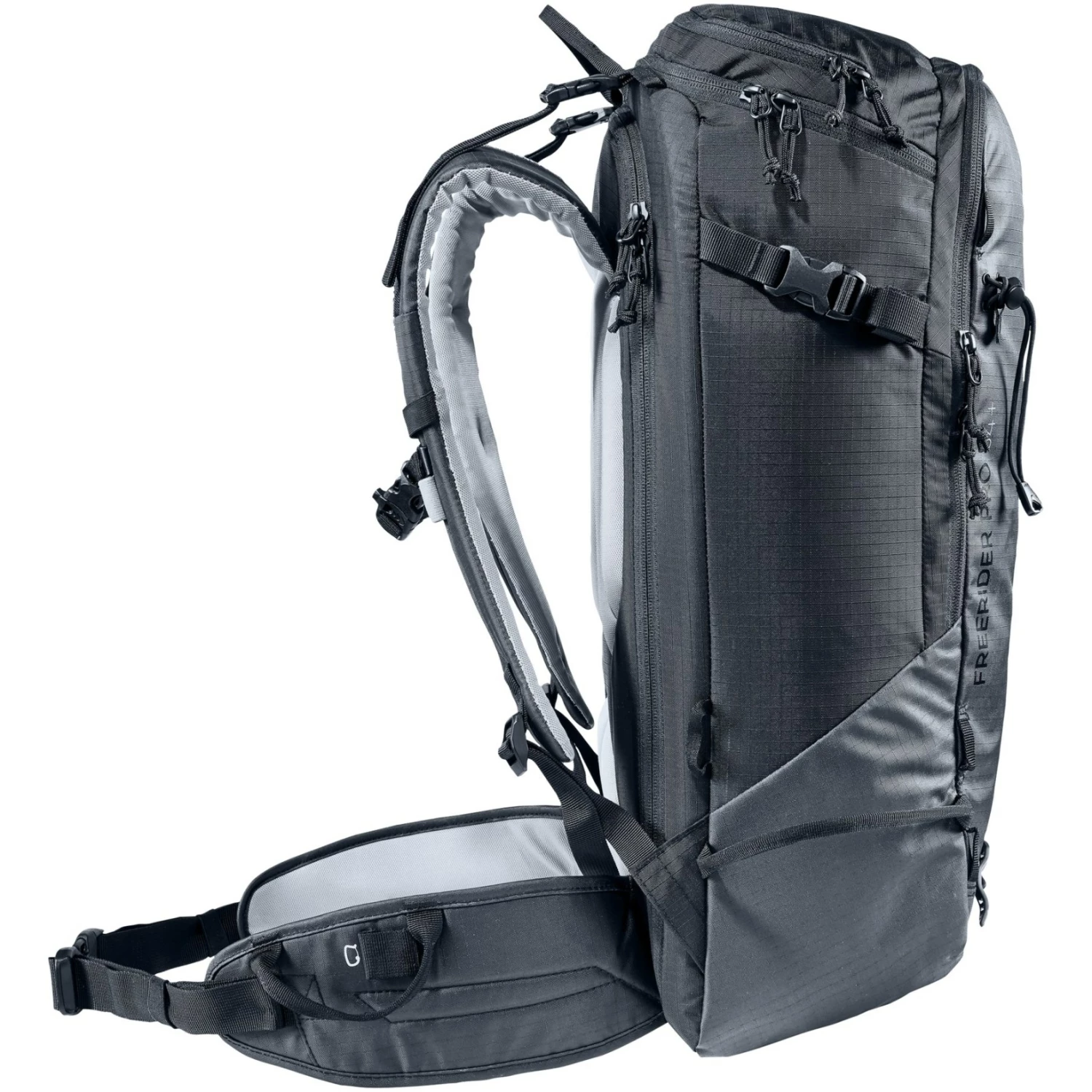 Een hoogtepunt van de Freerider Pro is de nieuwe roltop. Hiermee kunt u het volume met ongeveer 10 liter vergroten. De roltop heeft ook een opbergbare riem die kan worden gebruikt om extra bagage of een touw vast te zetten, of om de roltop zelf samen te drukken.