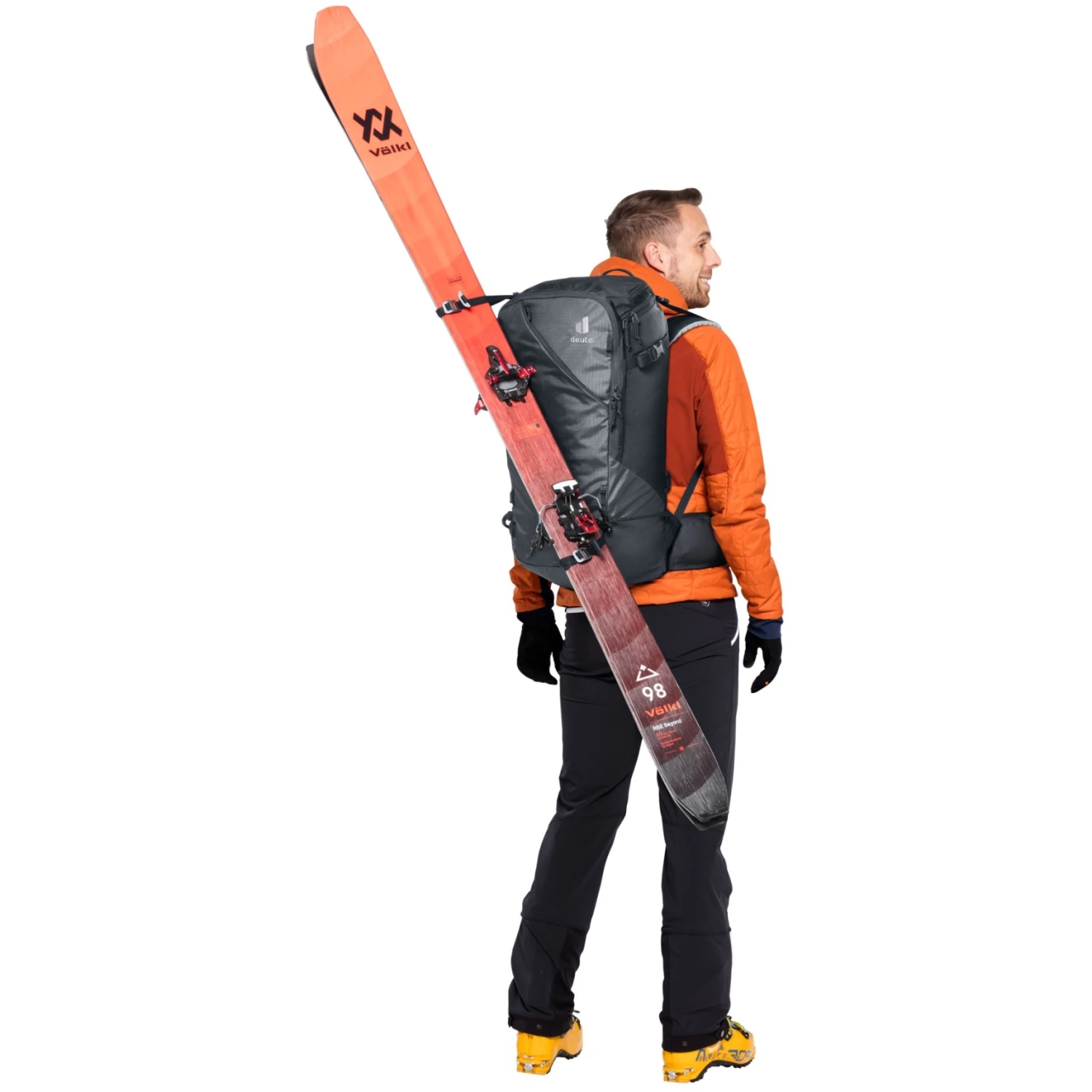 Je hoeft je spullen niet los te maken tijdens een pauze. De opening aan de achterkant geeft u snel toegang tot al uw spullen en een geweldig overzicht dankzij de volledig openklappende opening. Het nieuwe robuuste, ademende en sneeuwafstotende materiaal op het rugsysteem zorgt ervoor dat uw rug droog blijft.