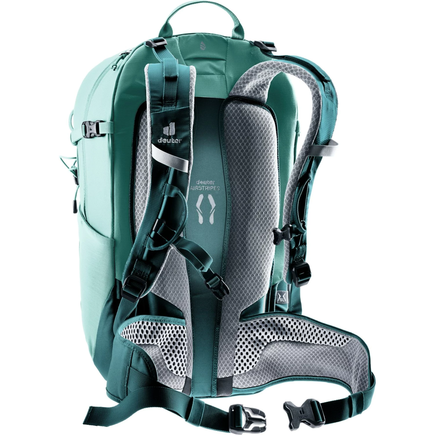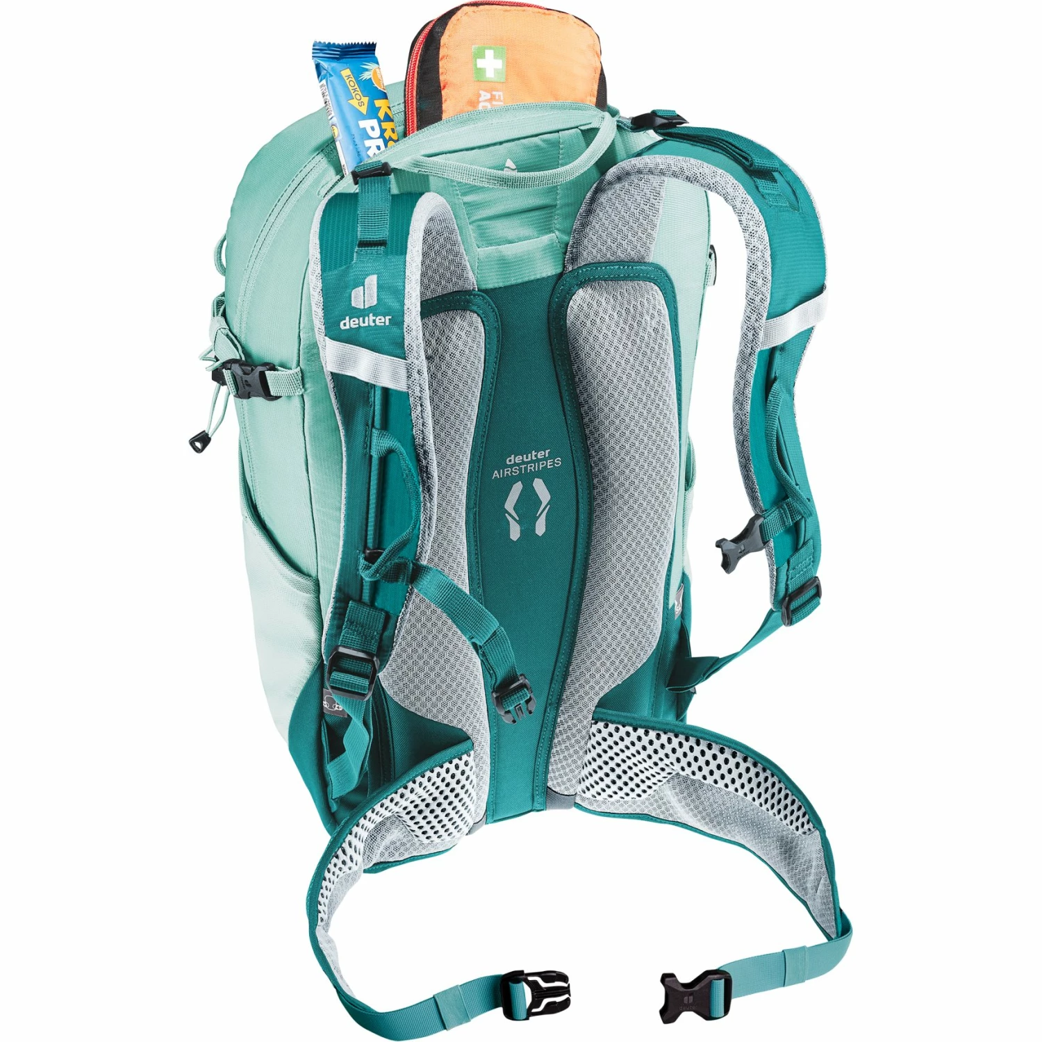 Het Airstripes rugsysteem met lage rugsteun en grote ventilatiekanalen en de geperforeerde schouderbanden en heupvinnen zorgen voor een optimale luchtcirculatie. Het zorgt ook voor een gewichtsverdeling dicht bij het lichaam en dus voor een compacte pasvorm, ongeacht het terrein.