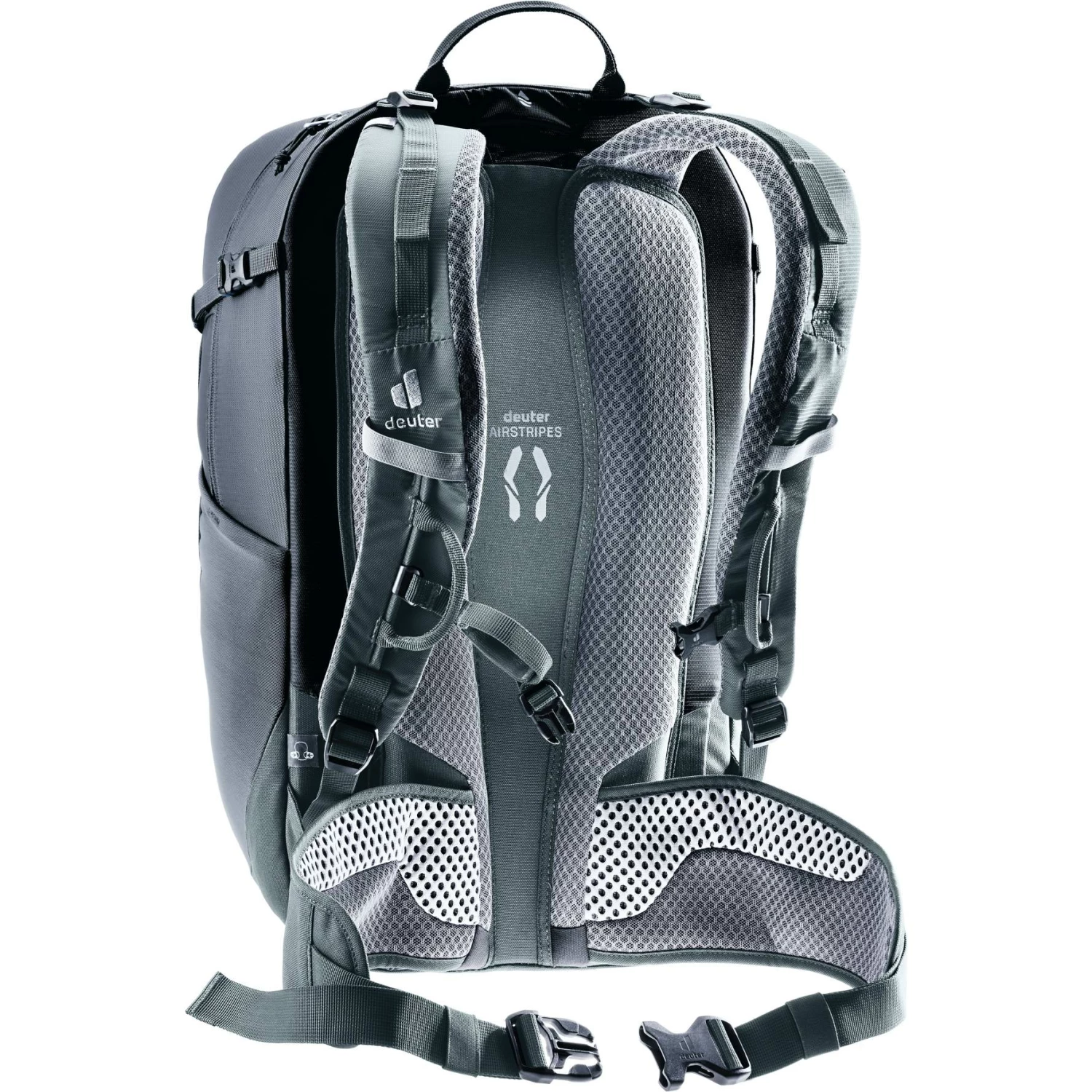 Het Airstripes rugsysteem met lage rugsteun en grote ventilatiekanalen en de geperforeerde schouderbanden en heupvinnen zorgen voor een optimale luchtcirculatie. Het zorgt ook voor een gewichtsverdeling dicht bij het lichaam en dus een compacte pasvorm, ongeacht het terrein.