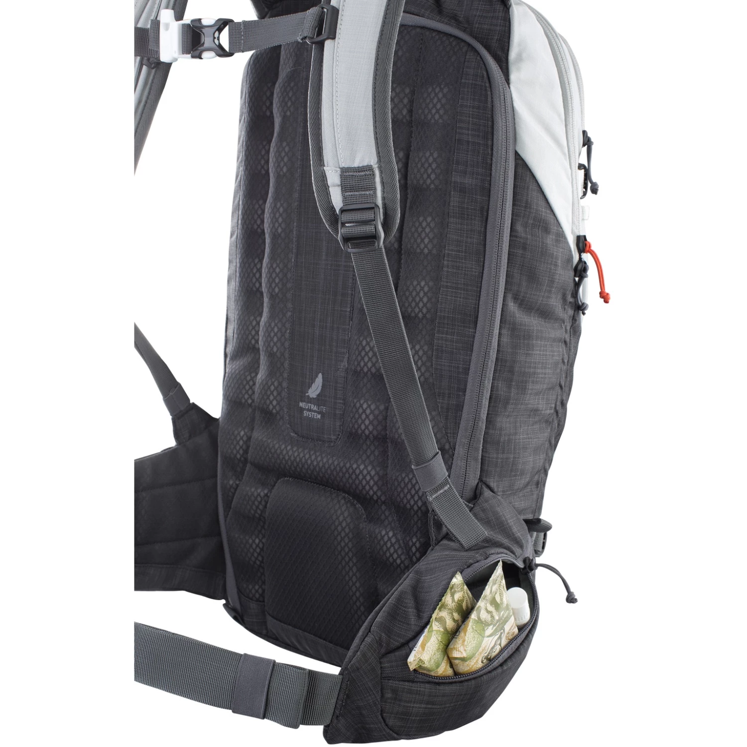 : stands for a neutral and lightweight feel of the backpacks. Load distribution follows the concept of “body hugging” so that the backpack stays perfectly in position – even during action-packed maneuvers. Via segmented, strategically positioned padding elements on the back, the weight is redistributed to the wide hip belt and to the body’s center of gravity via well-padded, ergonomically shaped shoulder straps.