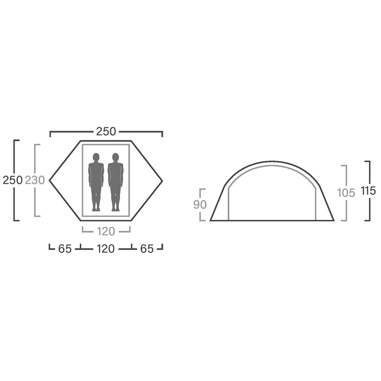 Reinsfjell SuperLight is een vrijstaande koepeltent met twee ingangen tegenover elkaar en vestibules die exibel gebruikt kunnen worden. U kunt al uw spullen aan de ene kant opbergen en aan de andere kant koken, of iedereen zijn eigen vestibule laten gebruiken. De voorgebogen stokken zorgen voor steilere wanden en meer ruimte in de binnentent.