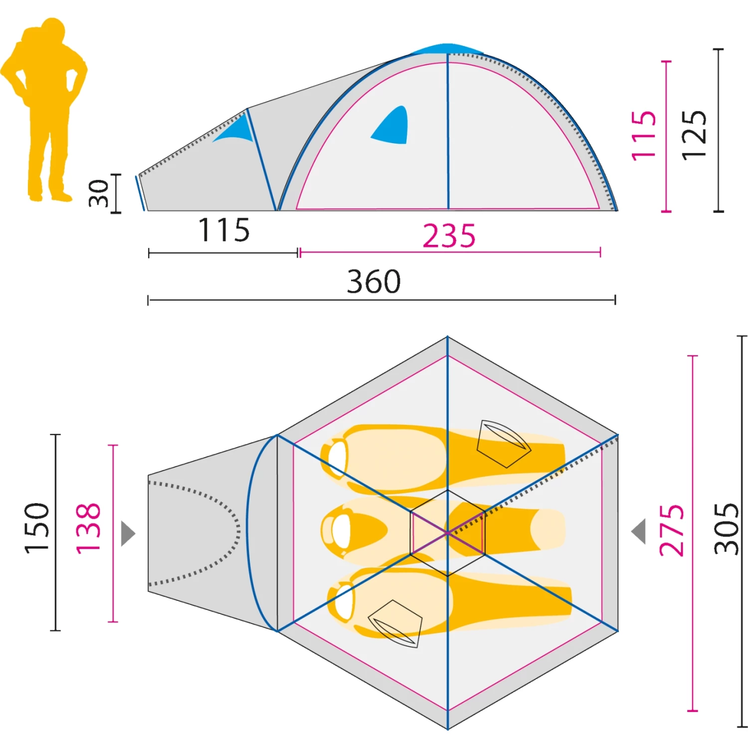 - CORNER EDGES: verticale stokken in de hoeken van de tent verhogen de windstabiliteit, vergroten de vestibule en maken het opzetten gemakkelijk.
