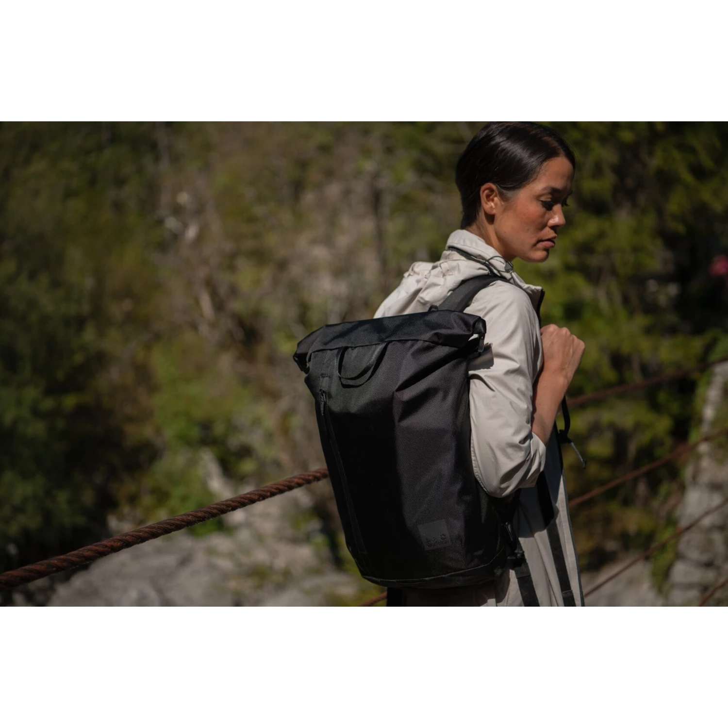 Het absolute hoogtepunt is natuurlijk de stijlvolle en tegelijkertijd super praktische rolsluiting. De gespen kunnen bovenaan of aan de zijkant worden bevestigd, afhankelijk van uw voorkeur. Het gevoerde en supercomfortabele draagsysteem met borstriem en afneembare heupband zorgt voor een perfecte pasvorm en comfort – zelfs als u met meer bagage reist.