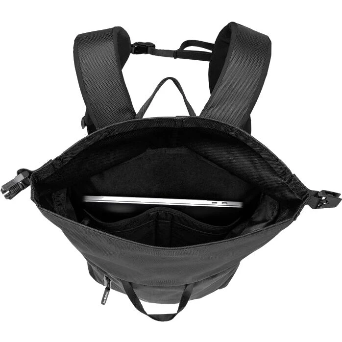 Het ruime hoofdvak is voorzien van een gewatteerd laptopvak dat niet helemaal tot de bodem reikt. Uw toestel is dus rondom perfect beschermd. Dankzij de extra, waterafstotende toegang met rits kunt u zelfs bij uw laptop zonder de rolsluiting te hoeven openen.