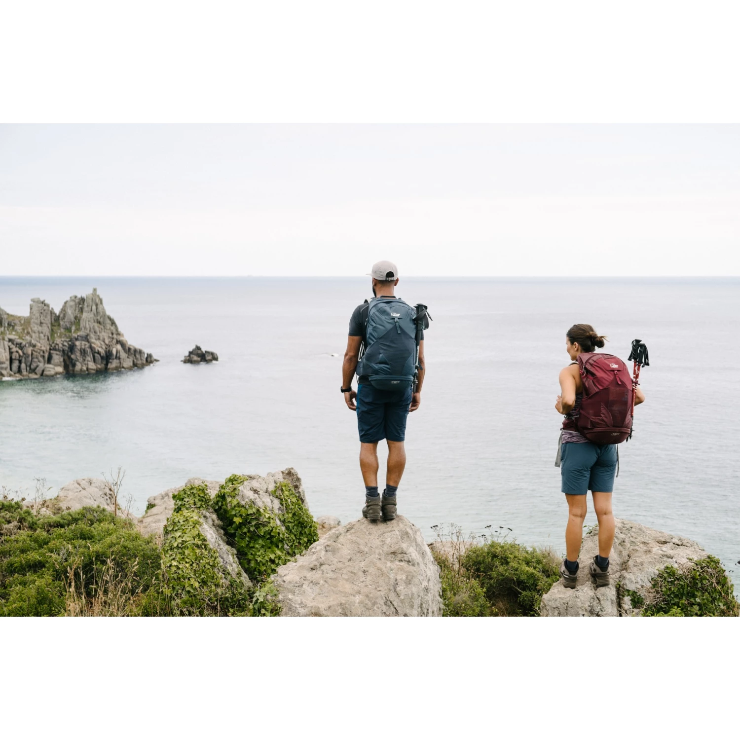 De Airzone Trail Duo heeft dubbele vakken en verschillende zakken voor alles wat je onderweg nodig hebt. Zo kun je bijvoorbeeld je slaapzak opbergen in het onderste gedeelte of natte kleding apart houden. De rugzak heeft tal van andere opbergmogelijkheden, waaronder heupgordelzakken met rits, een interne veiligheidszak voor waardevolle spullen, stokbevestigingen en een stretch mesh-zak aan de voorkant. Met zijn smallere afmetingen is hij ideaal voor vrouwen of mensen met een kleiner postuur. De pasvorm van de rugzak kan comfortabel worden aangepast aan de voorkant van de heupgordel en de regenhoes is inbegrepen zodat een regenvoorspelling niet het einde van de dag hoeft te betekenen.