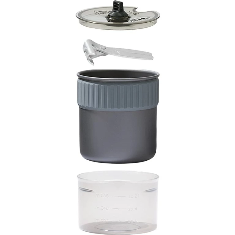De heeft het formaat van een grote beker en heeft alles wat je nodig hebt om voedsel te bereiden – allemaal in een kookset die belachelijk klein is in je rugzak. De pan, die kan worden gebruikt als eet- en drinkgerei, heeft het perfecte formaat om heet water te maken voor een buidelmaaltijd of een flinke kop koffie. Voor transport passen er een PocketRocket® 2 kooktoestel en een 110 g gaspatroon in de pan. De pan past op zijn beurt in de kom. Dit maakt de keukenset tot het ultieme ruimtebesparende kooksysteem voor mensen die graag snel en licht reizen.