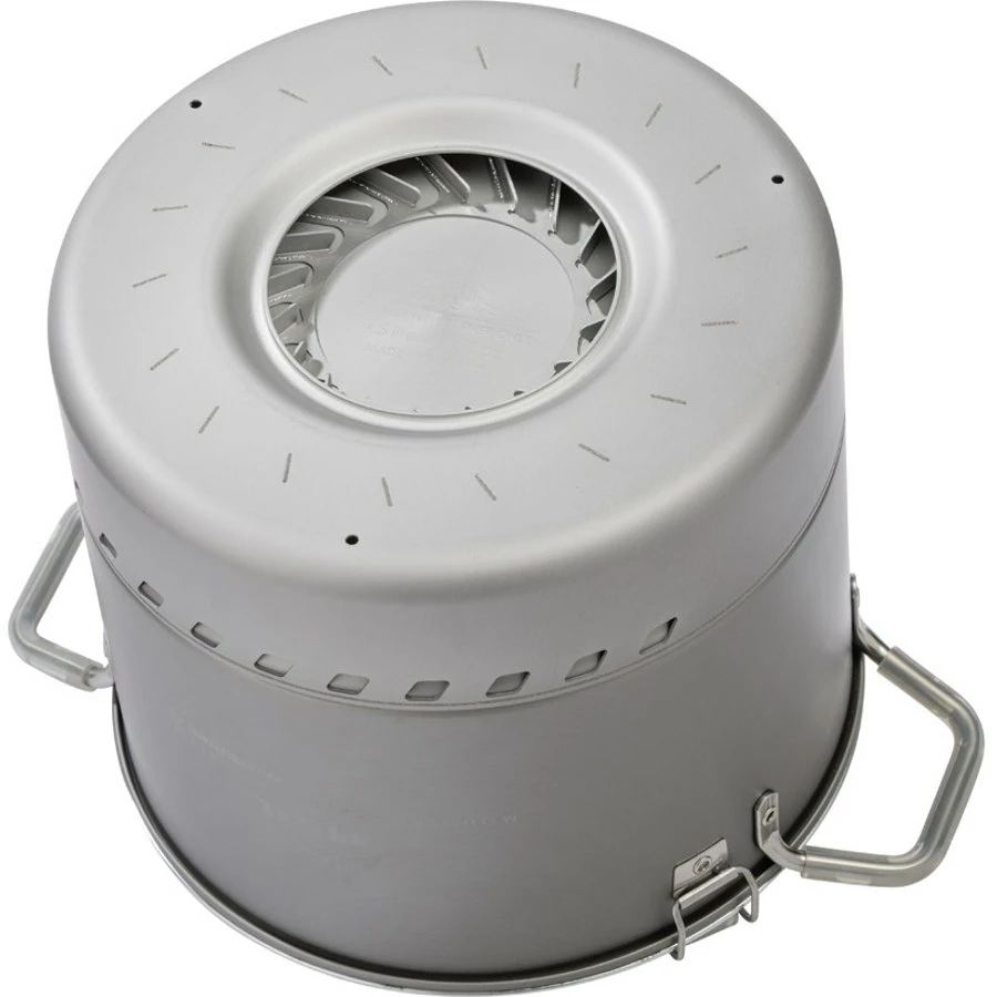 De is niet alleen perfect voor het koken van grote hoeveelheden, hij heeft ook een geïntegreerde warmtewisselaar die zorgt voor extreem efficiënte kooktijden zodat hongerige groepen snel gevoed kunnen worden. De 4,5 liter pan van geanodiseerd aluminium met vaste handgrepen om hem gemakkelijk op te tillen en een afsluitbare zeefdeksel is de perfecte accessoirepan voor WindBurner Stove Systems.