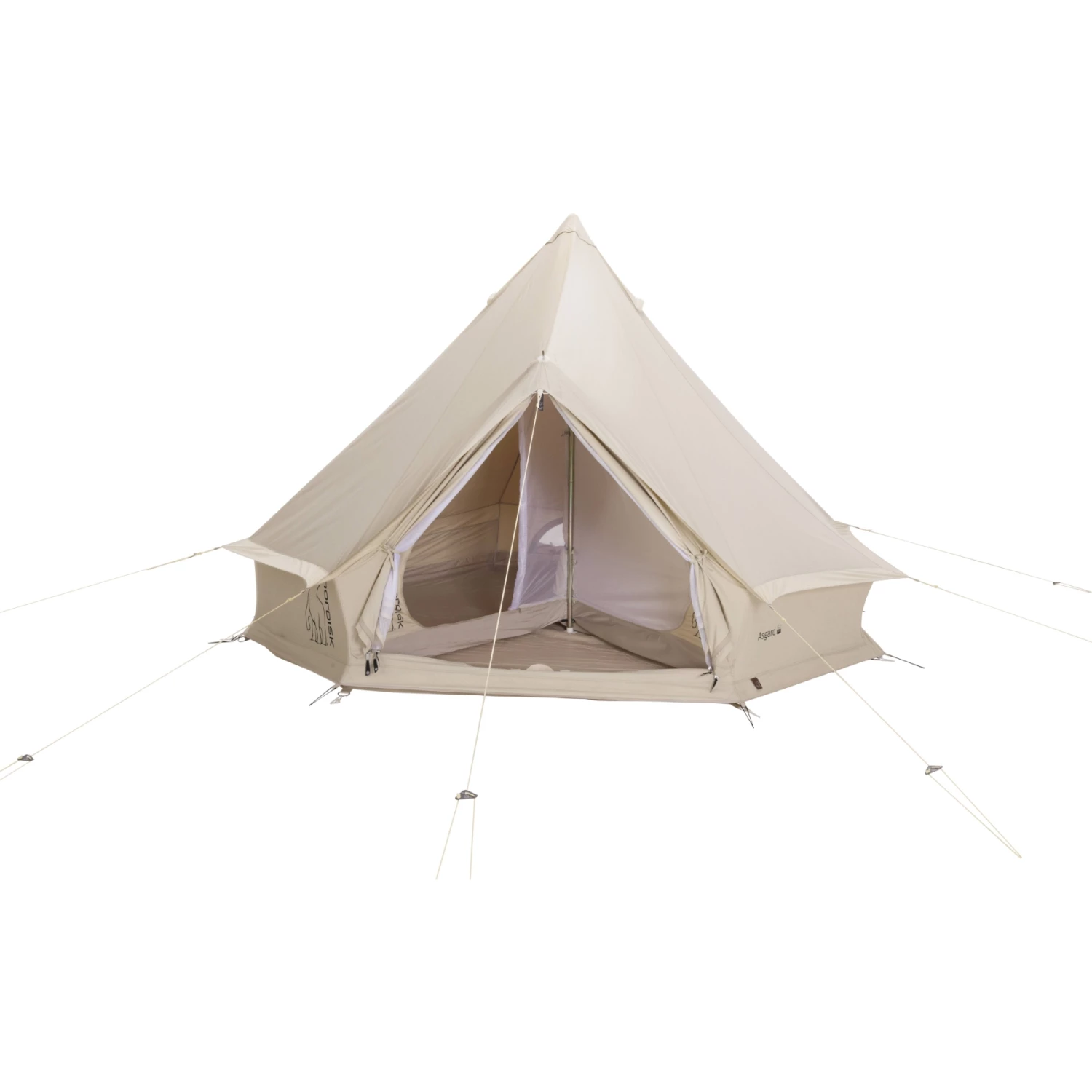 De Asgard 7.1 is een kleine, klassieke bellentent, maar met de sfeer van een groot model. De Asgard 7.1 tent is een geweldige tent voor 2-3 slapers omdat hij dankzij de middenstokkenconstructie zeer gemakkelijk op te zetten is. De deur met frame houdt de grote opening op zijn plaats – en de verticale zijkanten zorgen ervoor dat de footprint, die een geïntegreerde tentvloer heeft, volledig kan worden gebruikt. Ondanks zijn relatief kleine afmetingen heeft hij ramen van vloer tot plafond met muskietengaas die kunnen worden geopend voor een beter uitzicht en een goede ventilatie. De voordeur heeft ook een geïntegreerd muskietennet. Asgard 7.1 kan worden uitgebreid met een aangepaste cabine. Een tent die echt opvalt.