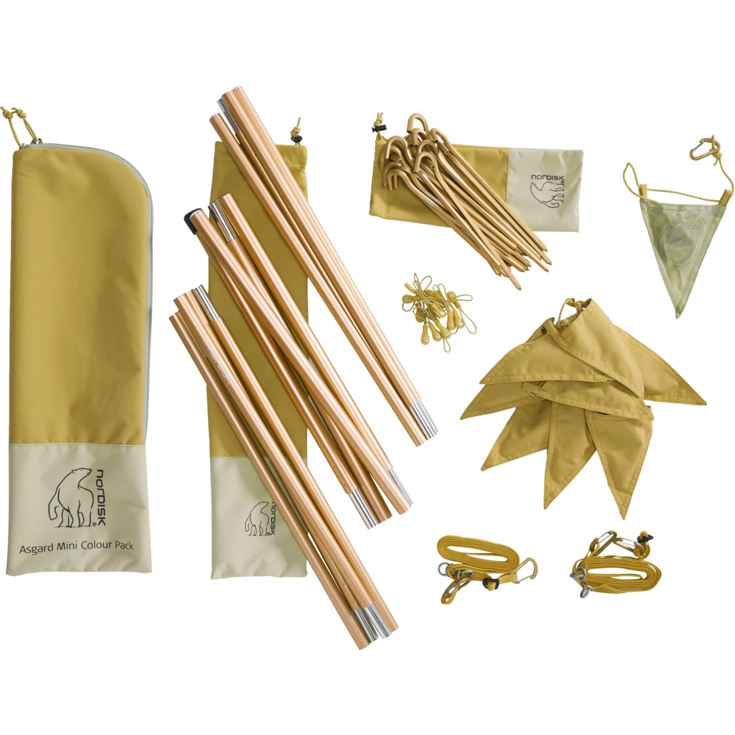 : Levering met Asgard Mini Colour Pack – Tentstokken + Tentharingen – Kleur Mustard