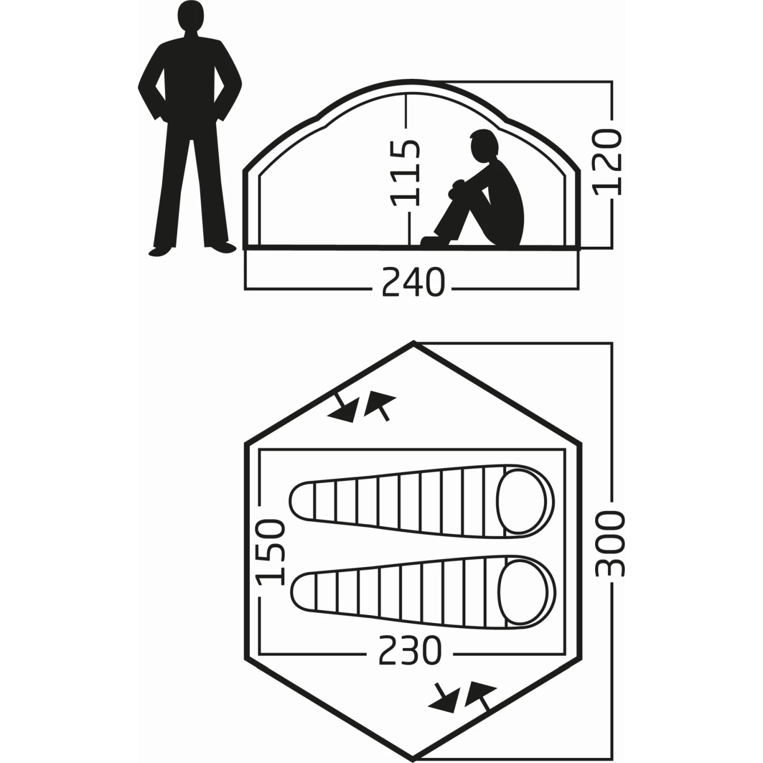 Er is een vestibule of ingang aan beide zijden. De tent biedt dus veel bergruimte, een goede luchtcirculatie en ruimte om te koken bij slecht weer. Een ander voordeel van twee ingangen is dat je je tentbuurman niet wakker hoeft te maken als je er ‘s nachts uit moet. De binnentent met muskietennet zorgt voor een goed binnenklimaat, optimale ventilatie en een uitstekend uitzicht wanneer de deuren openstaan.