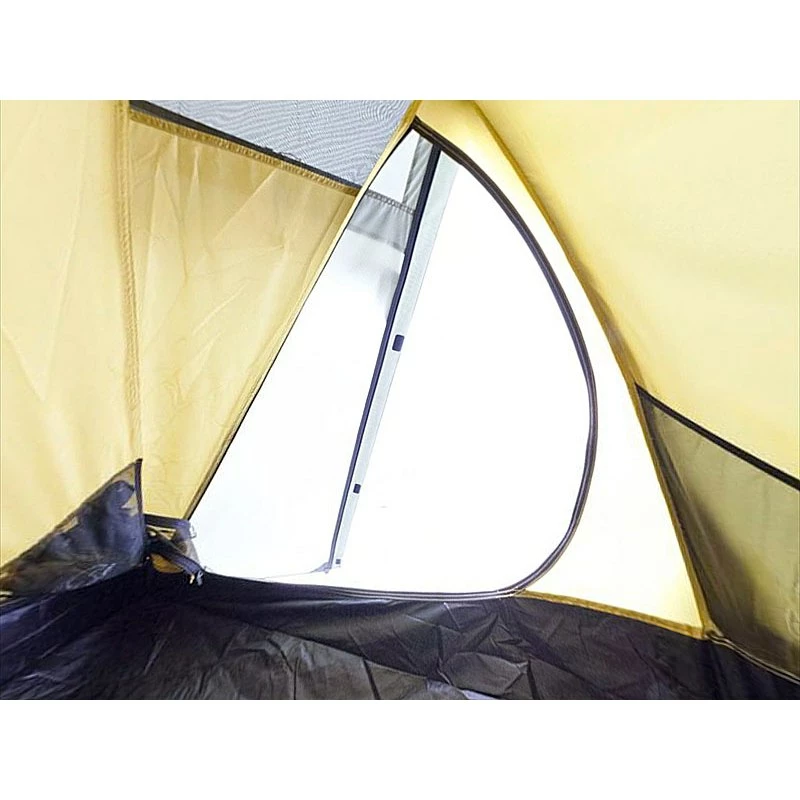 - Het zeer lichte maar robuuste doek is gemaakt van 100% nylon in rip-stop constructie met een scheursterkte van ca. 15 kg. Het is aan beide zijden gesiliconiseerd, in drie lagen, gemaakt van 40D garen in een constructie van ca. 240 draden per cm², het biedt een waterkolom van ca. 3.000 mm. Deze robuuste en flexibele constructie zorgt voor een dichte en tochtvrije oplossing voor een dergelijke tent. Wind- en waterdichtheid worden zo geoptimaliseerd.