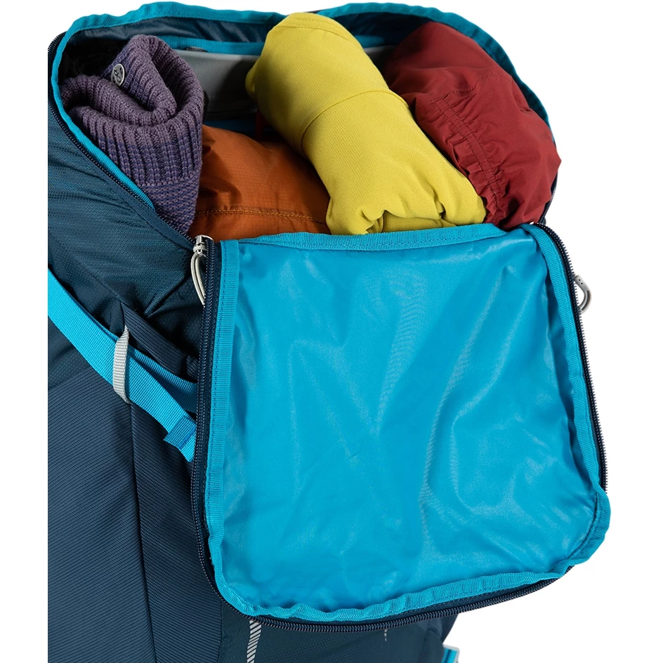 - Intern compartiment voor de drinkblaas met slangopening op het achterpaneel en Osprey Hydraclip om de drinkblaas gemakkelijk op te hangen.