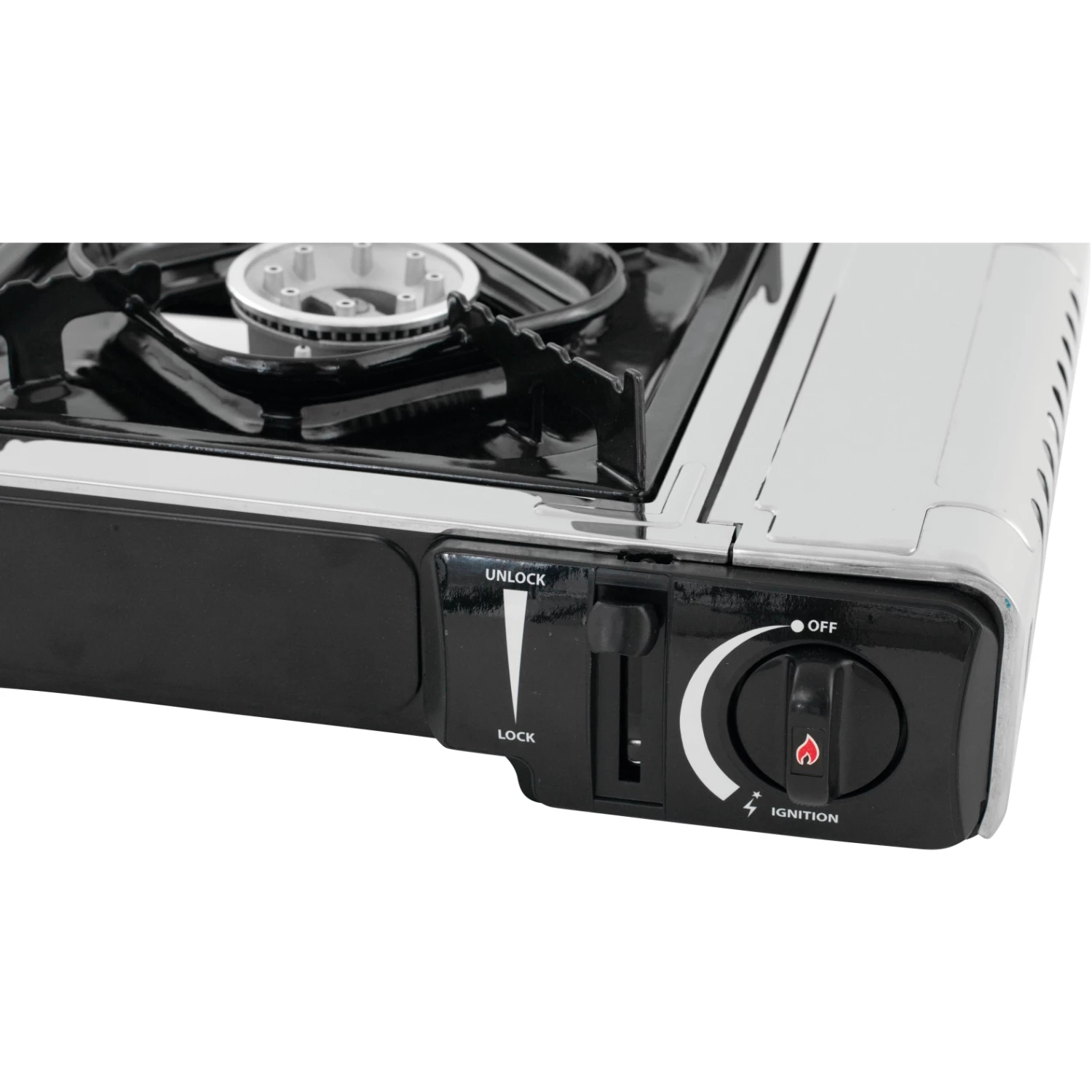 Het lichtgewicht en compacte met één pit biedt mobiele outdoorliefhebbers een ongecompliceerde manier om voedsel op te warmen en te bereiden. Dankzij de stevige reiscontainer is het de ideale metgezel voor kamperen en strandreizen, of het kan worden opgeslagen op een plank om ruimte te besparen als een secundaire grill totdat het nodig is.