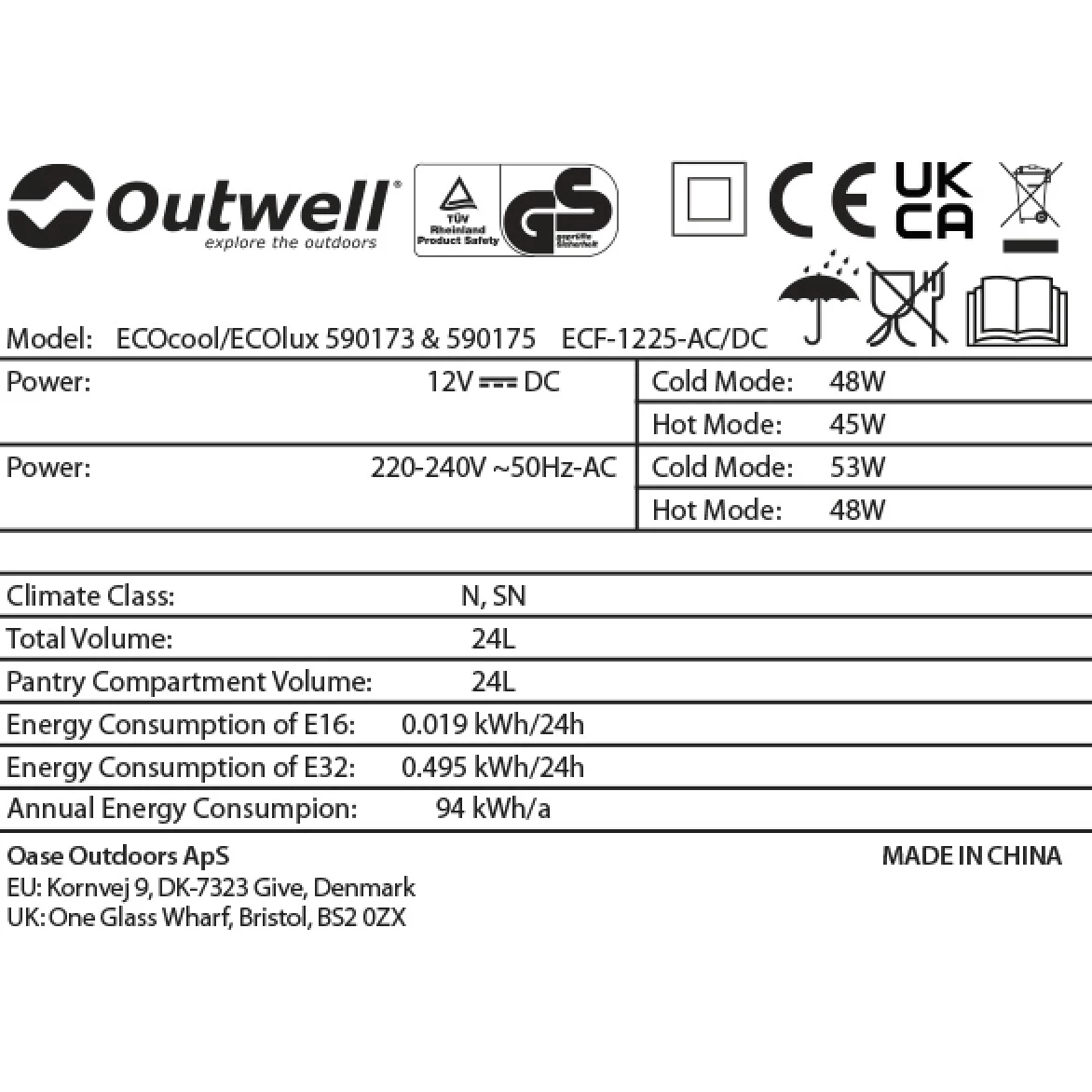 Technische gegevens van de Outwell ECOcool Slate Grey koelbox