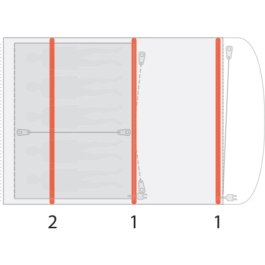 In de verticale naden van de binnendeuren zijn magneetstrips verwerkt, waardoor de ingang van de slaapcabine snel en geruisloos kan worden gesloten. Desgewenst kunnen de ritsen ook worden gesloten.
