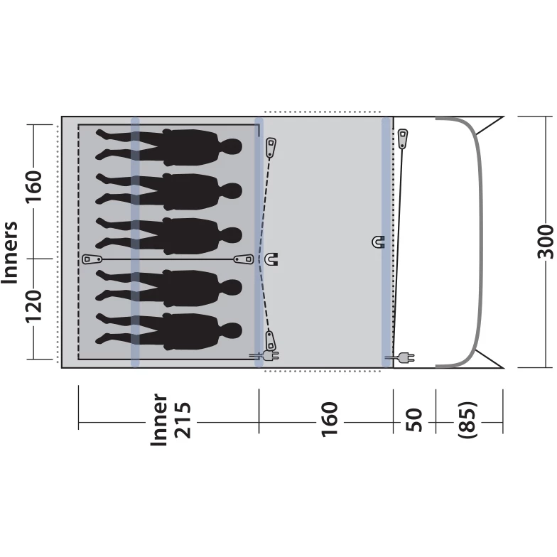 Outwell aanbeveling voor comfortabele slaapruimte – Outwell slaapcomfort is berekend op 70-80cm per persoon.