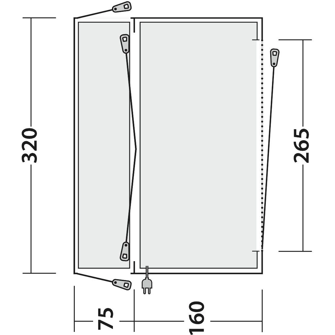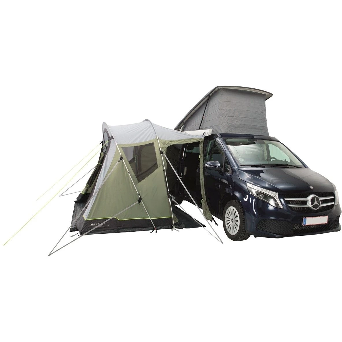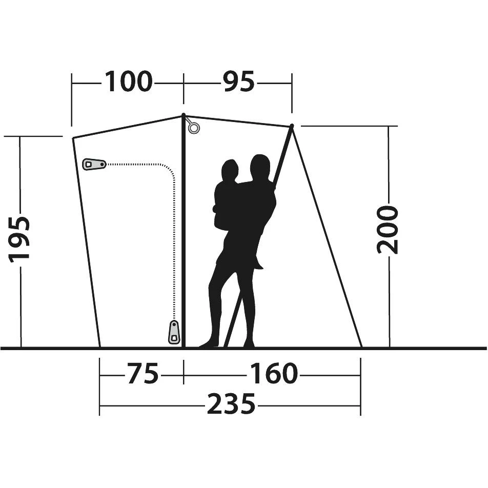 De Outwell Lakecrest vrijstaande busluifel is licht en compact. De voortent is gemakkelijk te ventileren en heeft twee zijruiten van gaas, een extra raam van gaas en een getint folieraam in de brede voordeur. Alle ramen kunnen worden afgesloten met een intern ritsgordijn. Dankzij de twee lichtgewicht aluminium paalbogen is hij gemakkelijk op te zetten. Als de voorwand volledig wordt opgerold en de verhoogde tentvloer wordt verwijderd, kan hij ook als ruime luifel worden gebruikt. In het luchtsluisgedeelte zijn er twee ingangen tegenover elkaar, waardoor het voertuig of de tent ook bij slecht weer goed toegankelijk is. Dankzij het meegeleverde grondzeil voor de luchtsluisruimte en de volledig te openen achterwand kan de binnenruimte worden vergroot en optimaal worden benut.