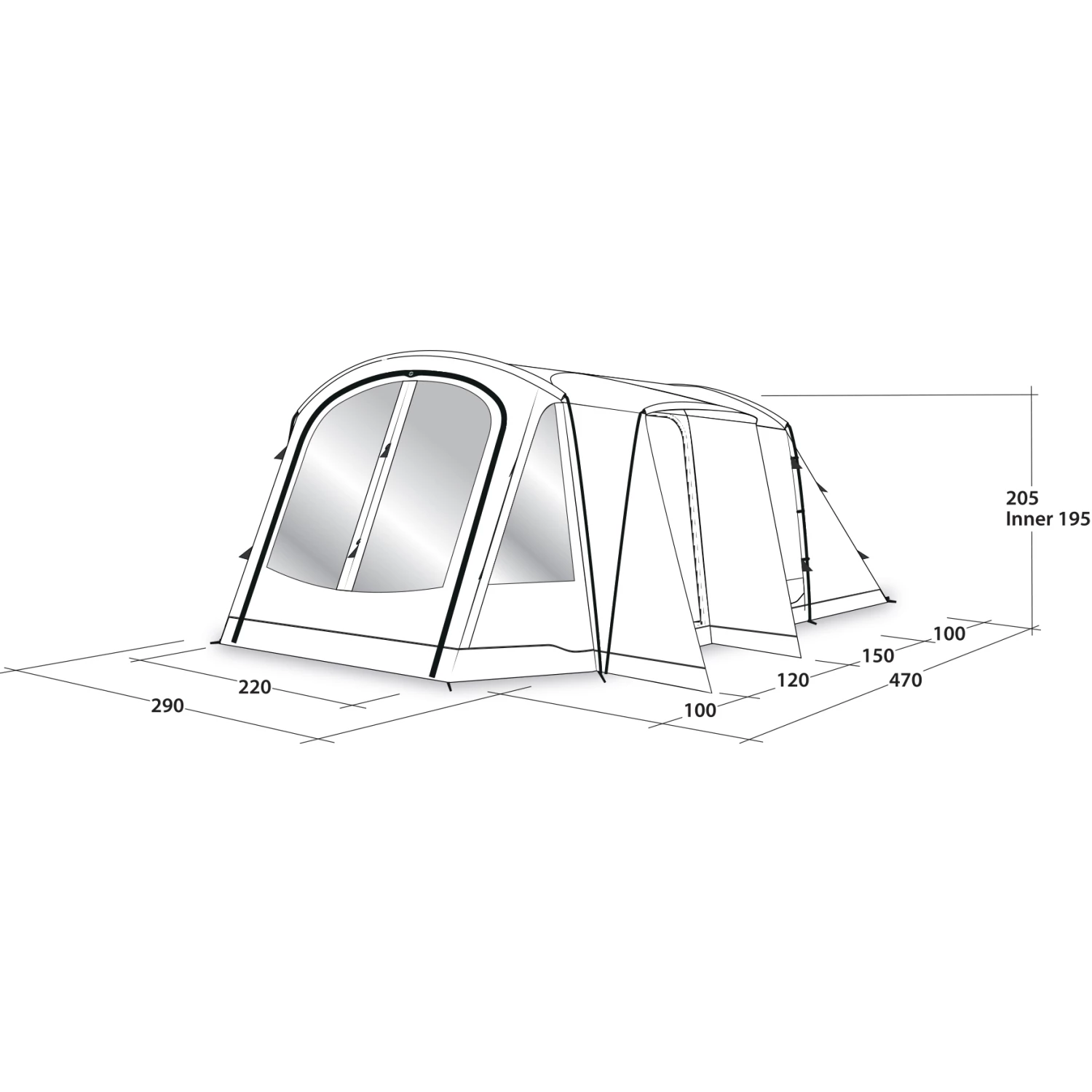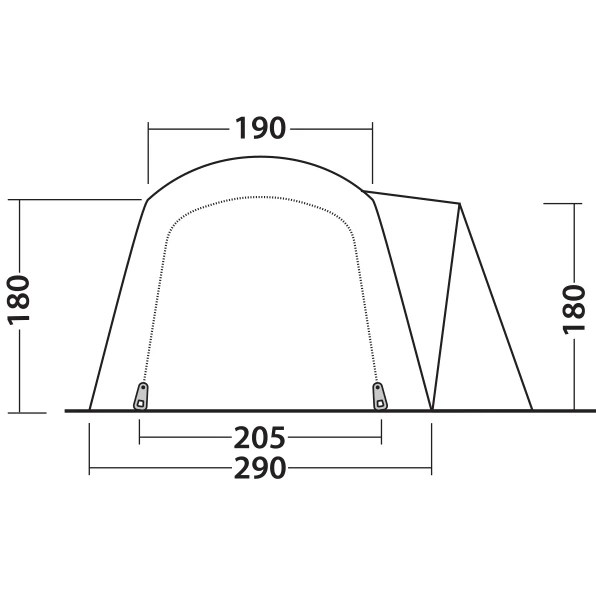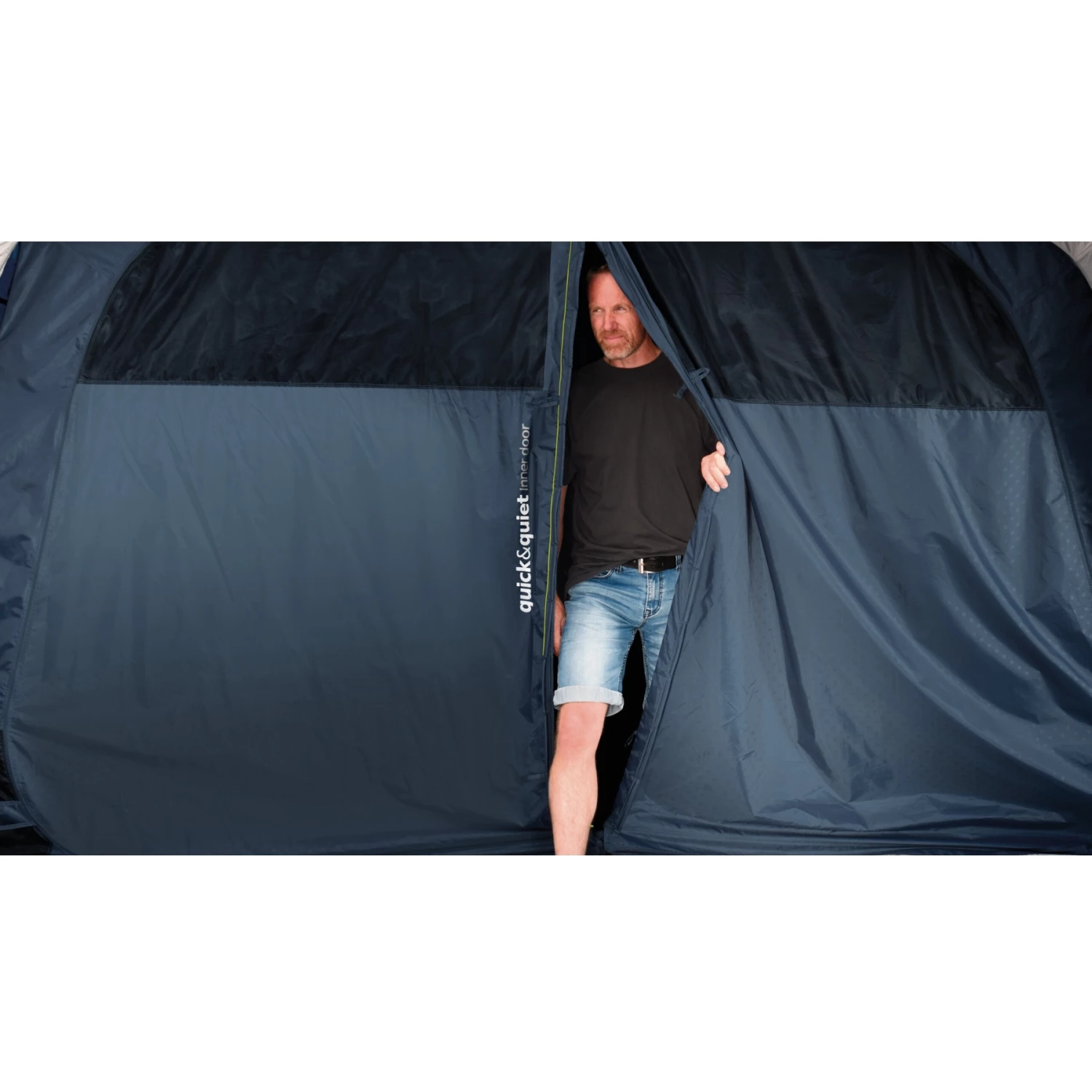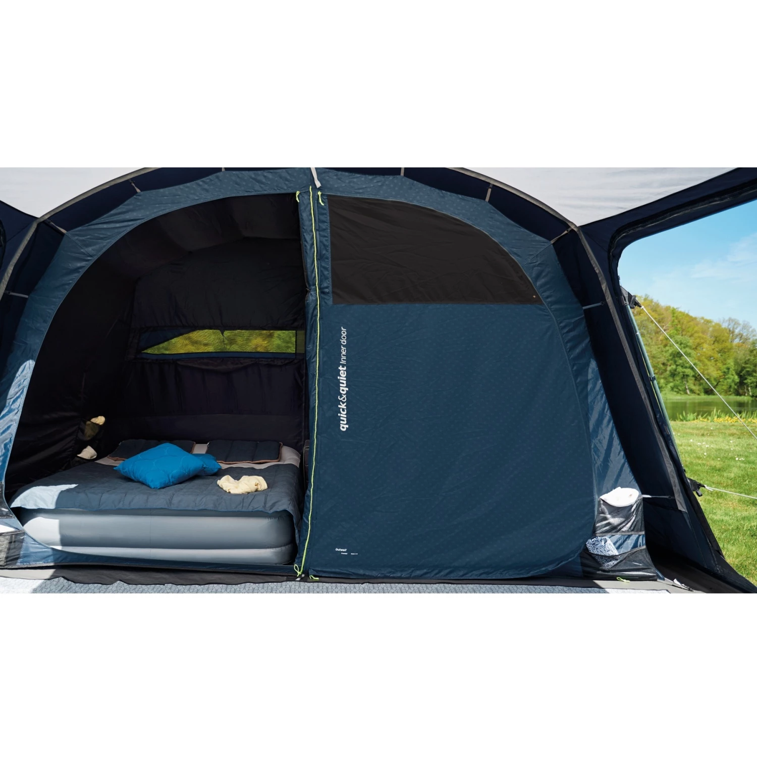 De hoofddeur klapt opzij en het grondzeil ligt vlak op de grond voor een veilige en gemakkelijke toegang tot de tent.