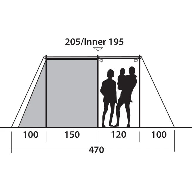 De industrienorm bepaalt 60 cm per persoon – Outwell berekent het slaapcomfort op 70-80 cm per persoon.