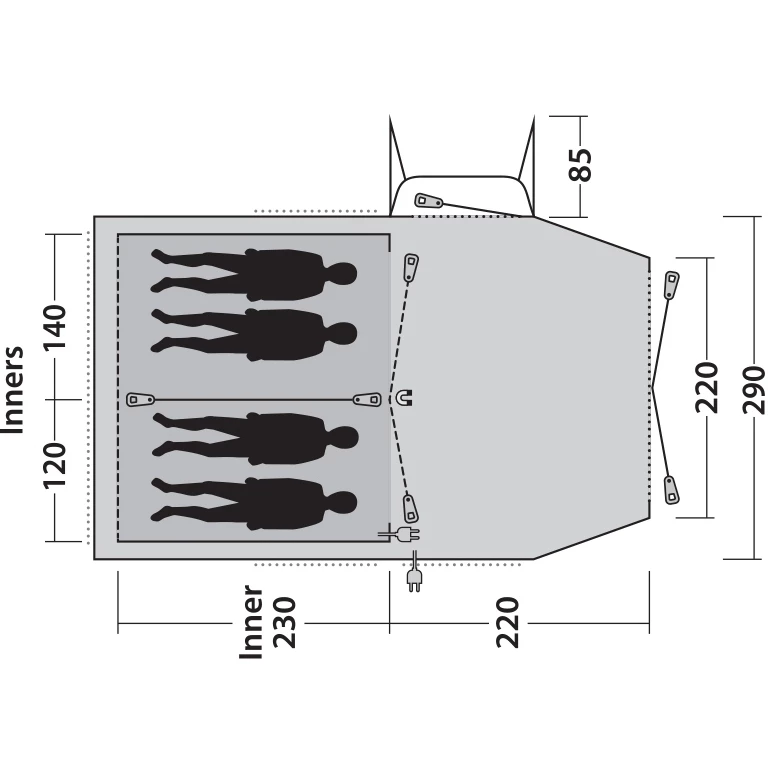 - Verstelbare scheerlijnen voor flexibel opzetten van de tent