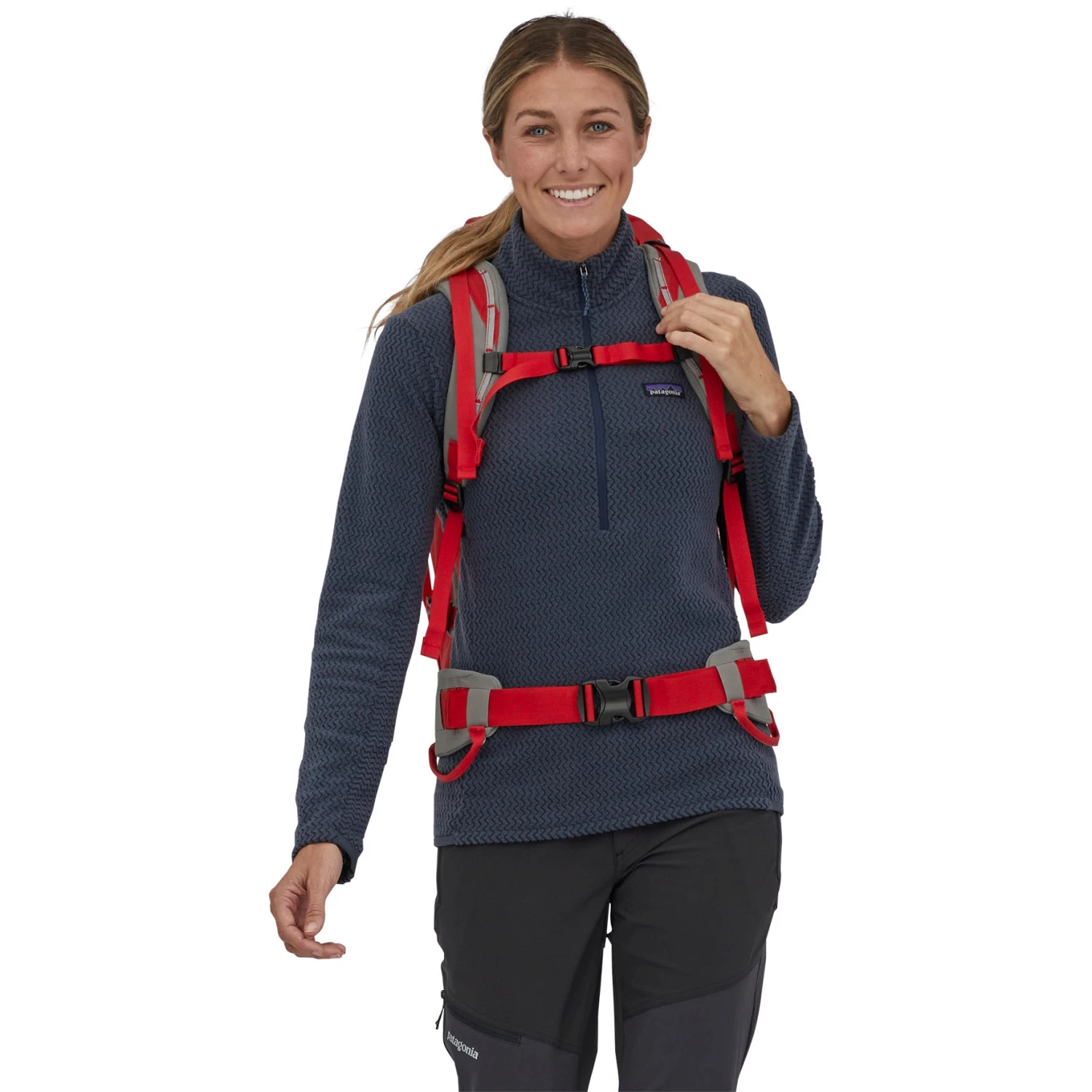 - Patagonia’s verstelbare systeem voor het dragen van ijsgereedschap past zich aan bijna elke vorm aan en beschermt tegen scherpe punten.