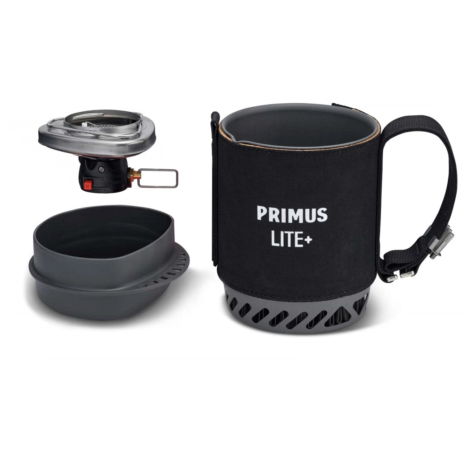 - Hard geanodiseerde 0,5 L aluminium pan met geïntegreerde warmtewisselaar, schenktuit en geïsoleerd deksel van de pan