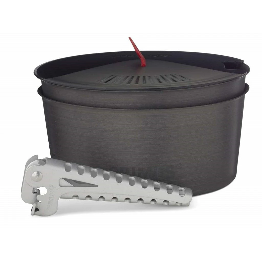 De set voor 1-3 personen bevat een deksel met geïntegreerde zeef – perfect voor het afgieten van pastawater, ook een tang en een transporttas.