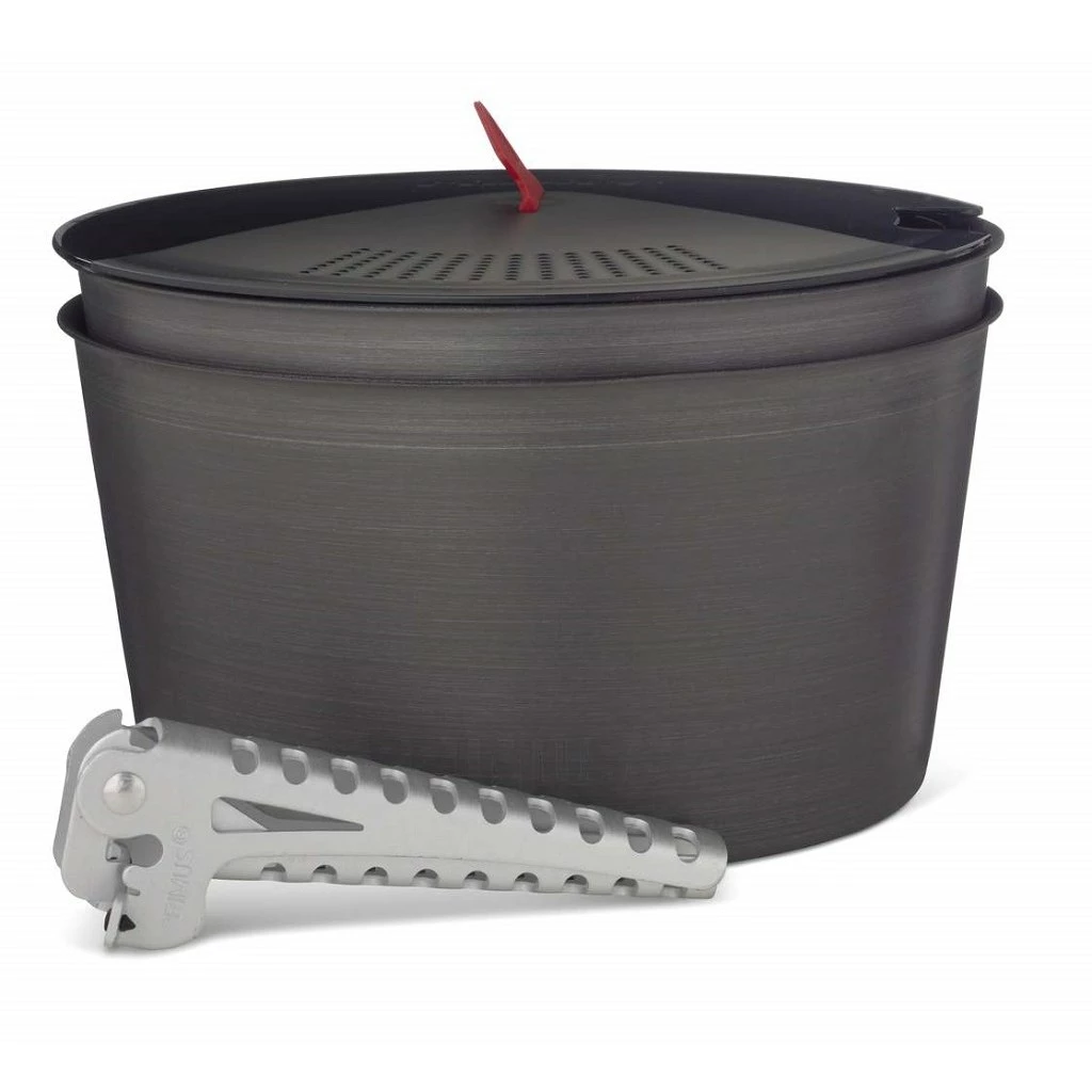 LiTech Pot Set is, zoals de naam al doet vermoeden, de eerste keuze voor de wandelaar die graag licht bepakt. De potten zijn gemaakt van hard geanodiseerd en hoogwaardig aluminium, wat zorgt voor een duurzame maar lichte set. Beide potten hebben een antiaanbaklaag in verschillende lagen om ze zo gemakkelijk mogelijk te gebruiken en schoon te maken. Zorg ervoor dat u geen metalen keukengerei in de potten gebruikt, omdat dit de antiaanbaklaag kan vernietigen. De potten kunnen in elkaar gepakt worden, waardoor ze een rammelvrije eenheid vormen.