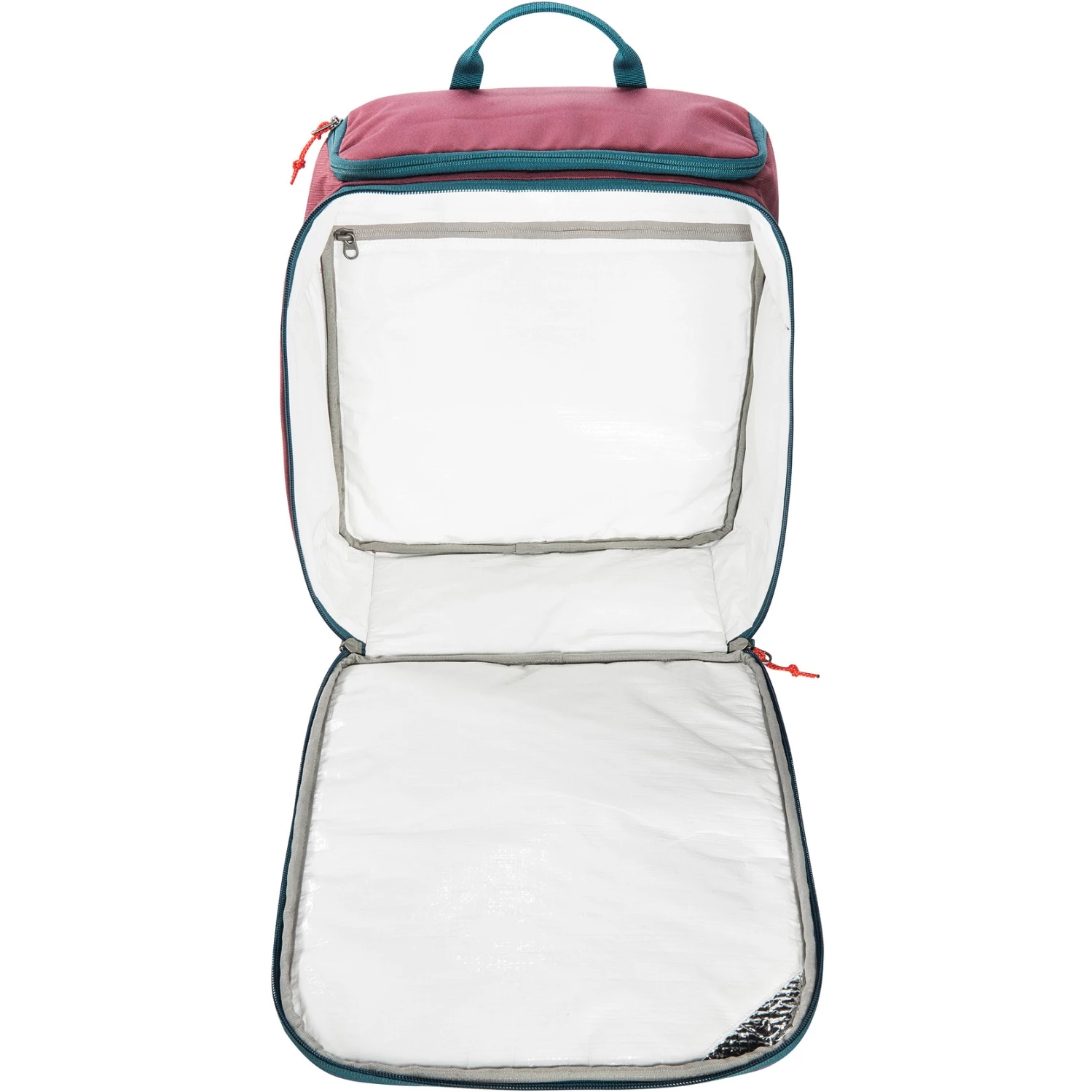 De Tatonka koeltas M heeft een praktische toegang via de bovenkant, zodat u hem niet uit uw rugzak hoeft te halen. Het kan ook volledig worden geopend met een ritssluiting rondom. Er is een apart vakje voor het koelelement.
