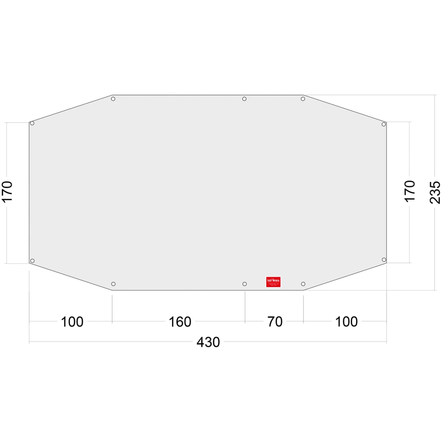 De tentonderlaag beschermt de tentvloer tegen beschadiging. Het is aangepast aan de vloerafmetingen van de tent en kan op de hoeken worden bevestigd.