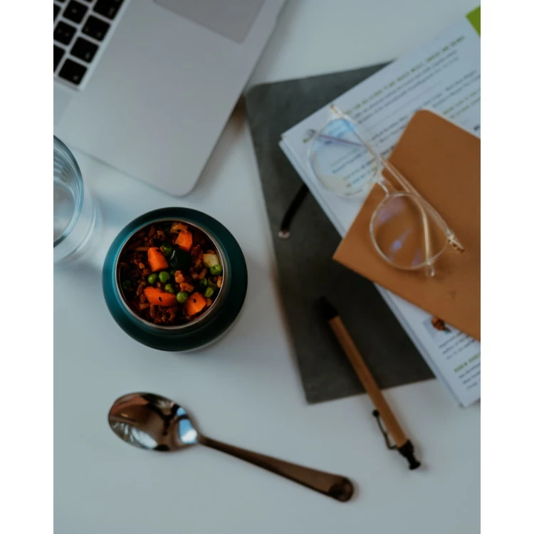 Casual, een glimlach op je gezicht en de thermische container in je hand – als je cool wilt zijn, pronk je met je goede humeur en zelfgemaakte hummus en quinoasalade tijdens de lunch in de lucht.