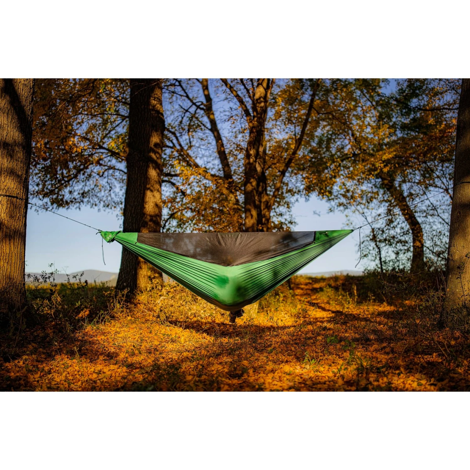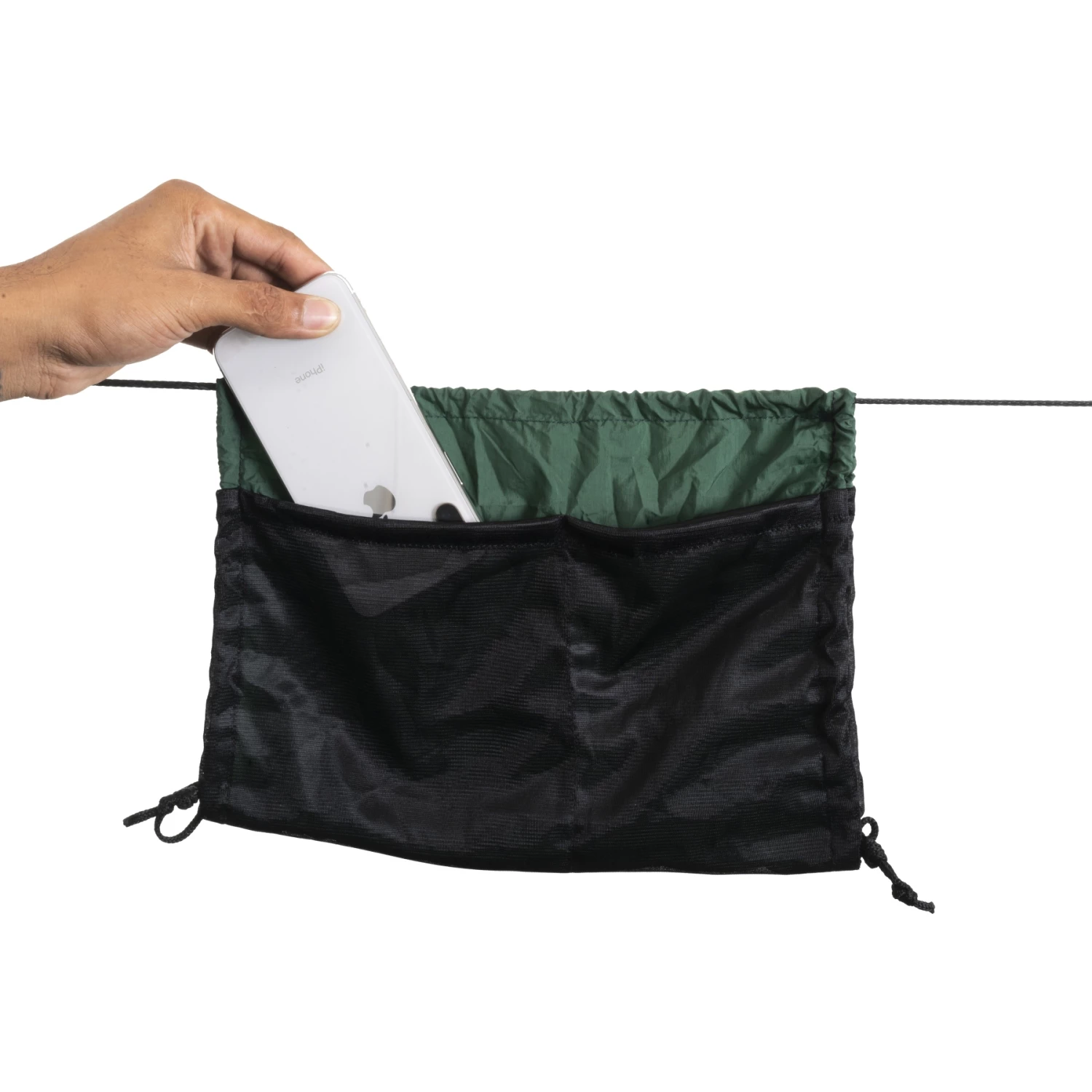 Perfect suspension is guaranteed every time – an integrated ridgeline maintains the same comfortable hanging shape every time to keep your back straight while diagonal sleeping. The comes with a handy organizer / storage system for the mosquito net and personal gear. With external loops, you can connect your moonquilt to the hammock or attach your gear to ensure you are secured from mosquitoes as well as other environmental elements on your trip.