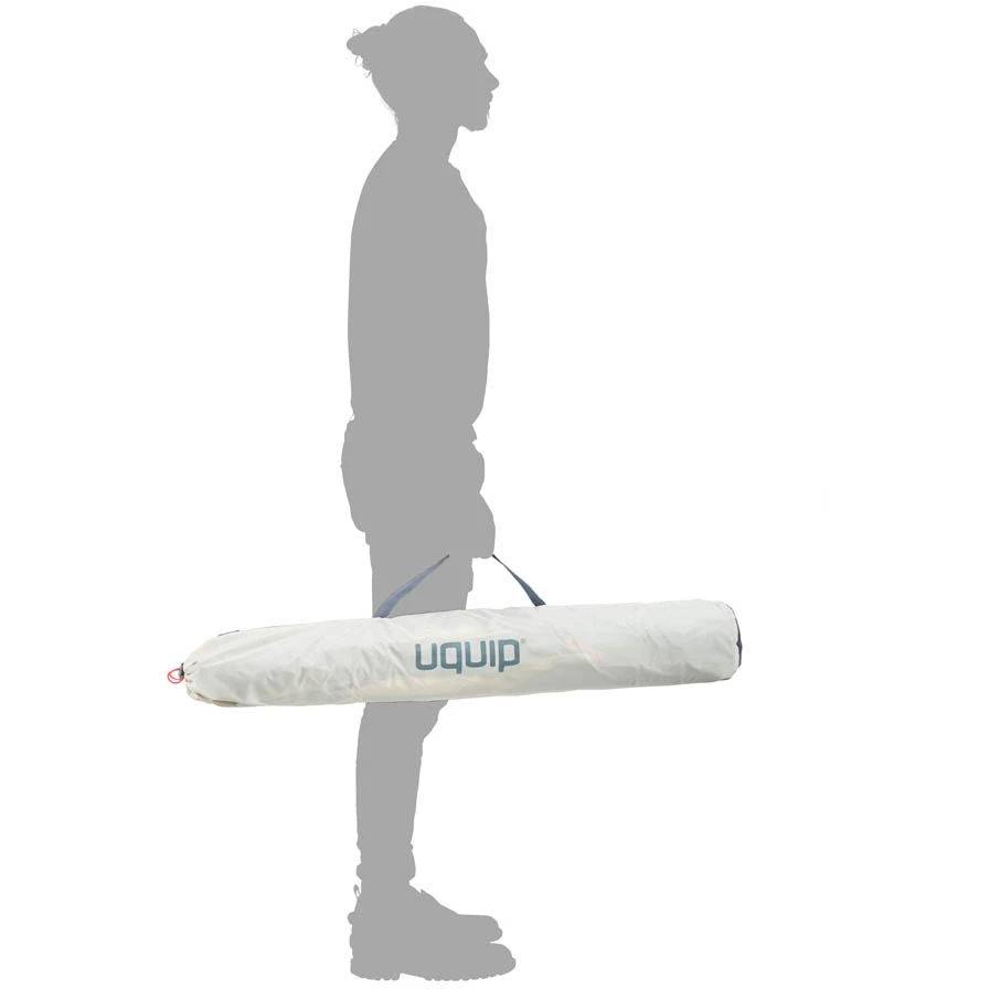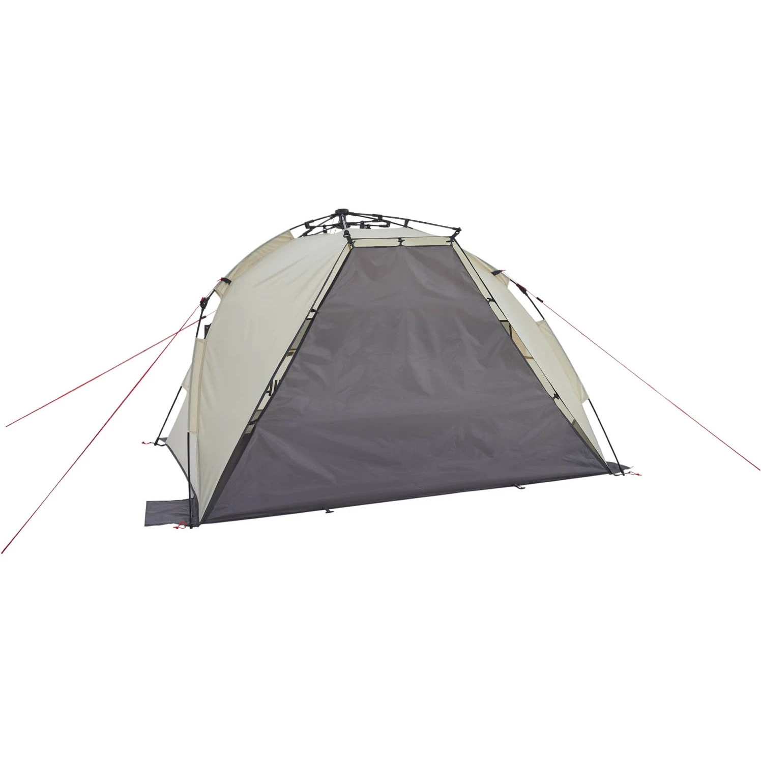 De afsluitbare strandtent “Speedy” heeft een innovatief snelmontagemechanisme. Dit betekent dat “Speedy” al na enkele seconden volledig gebruiksklaar is. Dankzij de drie afsluitbare ventilatieramen met muskietengaasinzet is er altijd voldoende luchtcirculatie, zelfs als het front gesloten is. Zandzakken en haringen zorgen voor de nodige stabiliteit, zelfs bij sterkere wind.