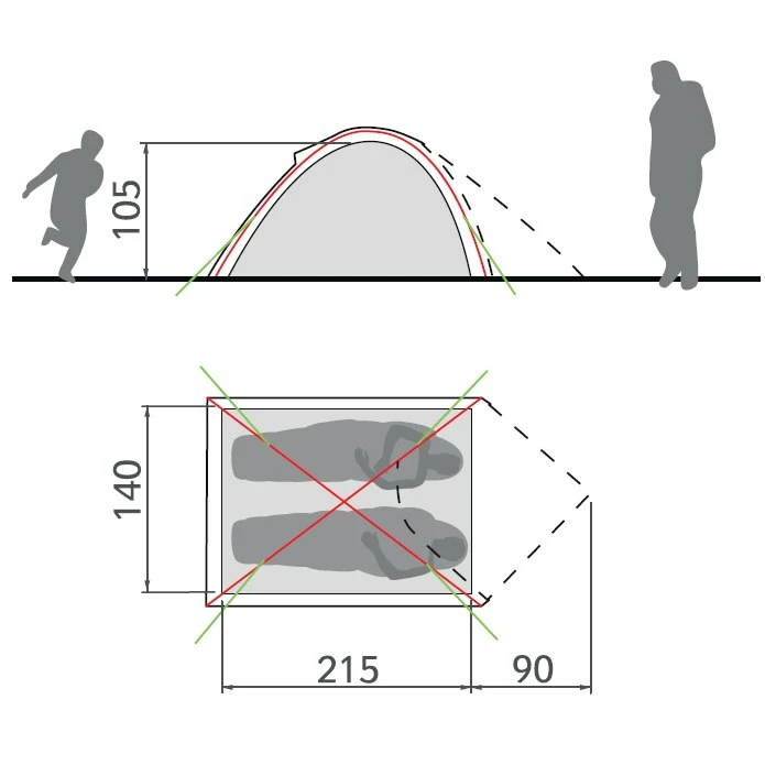 - Materiaal buitentent: 100% polyamide 40 D ripstop beide zijden siliconen gecoat 3.000 mm