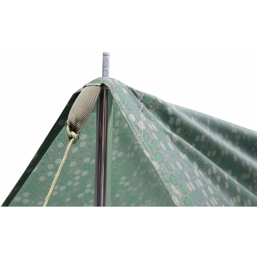 De , met afmetingen van 290 x 290 cm, is een universele luifel van 9 m2. Meerdere afspanmogelijkheden bieden een breed toepassingsgebied: van een extra overkapping tot een vervangende tent. Het camouflagepatroon past qua kleur bij de omgeving en biedt een onopvallende overnachting in bosrijke gebieden of in de wilde natuur. Alle afspanpunten zijn versterkt met webbing en voorzien van vaste messing ogen.