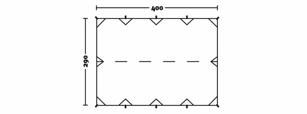De met de afmetingen 290 x 400 cm is een rechthoekige universele luifel van 11,6 m². Meerdere spanmogelijkheden bieden een breed scala aan gebruiksmogelijkheden: van een extra dak tot een vervangende tent. Het kan gemakkelijk worden bevestigd aan bomen of palen of afzonderlijk worden gebruikt met palen (niet inbegrepen).