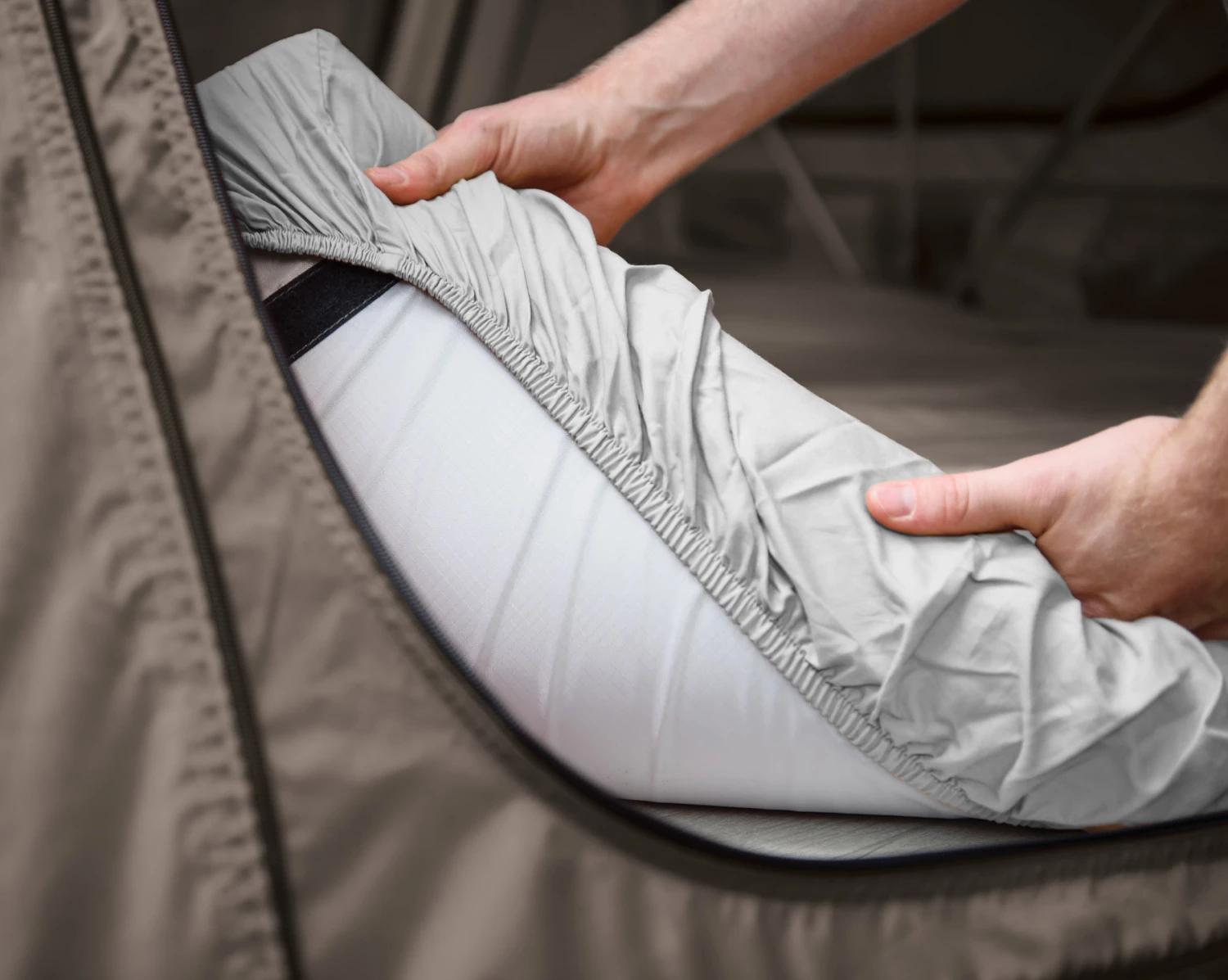 Deze spannende toevoeging is uw middelpunt voor het ultieme mobiele basiskamp in elk seizoen. De body van de SkyRise HD tent is robuust gebouwd met 600D ripstop polyester stof en een 3000mm waterdichte PU coating. In combinatie met de weerbestendige, waterdichte regenhoes bent u klaar voor volledige bescherming tegen de elementen. De extra grote ramen en deuren zorgen voor een geweldig uitzicht en ventilatie, terwijl het dikke schuimrubberen slaapmatje u de hele nacht comfortabel houdt.